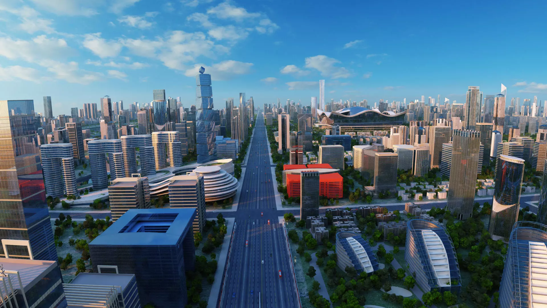 The New Century Global Center was designed by Zaha Hadid and Zhongshen Architecture, and invested and built by the Exhibition and Tourism Group. The main project was completed in 2012; It officially opened in September 2013, with the overall design of flying seagulls, undulating waves, forming a treasure trove on water style against the backdrop of sunlight and water scenery. It is 3 kilometers away from Chengdu South Station, about 50 minutes by bus from Shuangliu International Airport, and about 20 minutes by car from Chengdu East Railway Station.The New Century Global Center is known as the largest single building in Asia (some say the world's largest), capable of accommodating 20 Sydney Opera houses and 3 Pentagon buildings.Model making software: 3ds Max 2014Rendering software: vray3.60.03 for 3dmax2014 Note: The tree planting plugin MultiScatter1.20.12 for 3dsmax2014 3ds Max was used in the scene. The scene has various levels of buildings, making it convenient for users to choose according to their needs. The architecture and scene refinement in the scene are relatively rich. It is recommended to use 3ds Max 2014 and later software to open and use it. FBX files do not include trees planted with plugins. If you need a complete tree and plant model, please use the 3ds Max version.