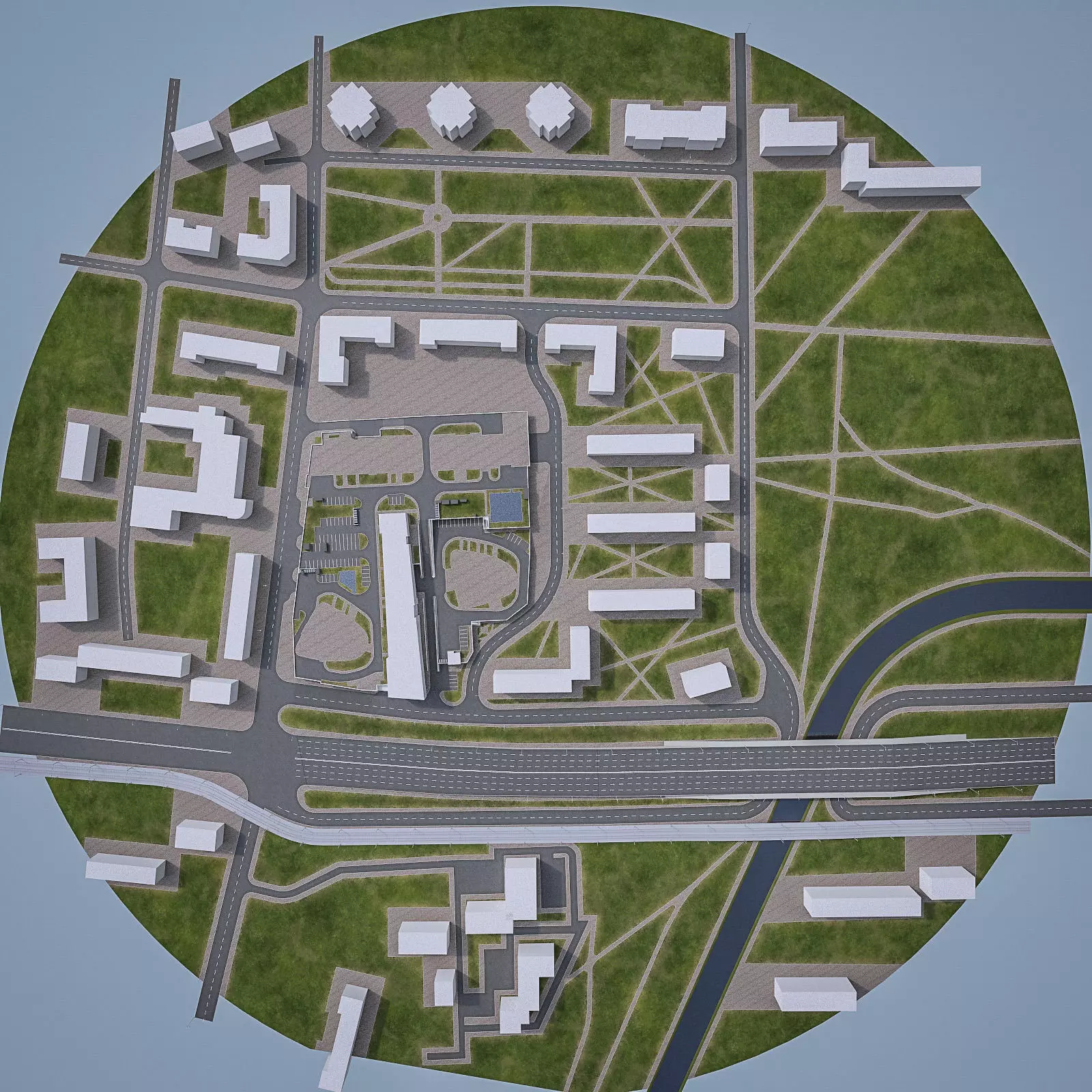 This is detailed and textured real world model of urban area with roads pavements and grassMesh is low-poly, allows you to easily build up the additional details, edit geometry.Product dimensions: 1km x 1kmOriginally created with 3ds Max 2011