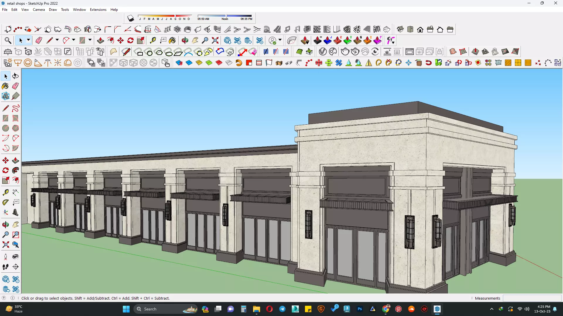 The model has material settings that define how surfaces look (color, shine, transparency, etc.).