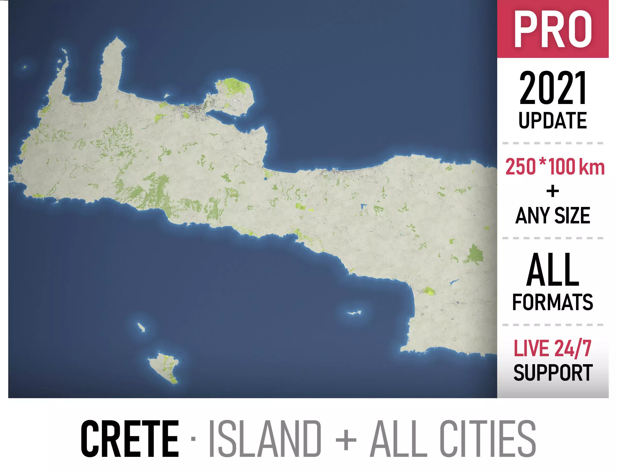This is exact and accurate to scale 3D city model of Crete island, Greece and its surrounding area based on GIS data (October 2021)