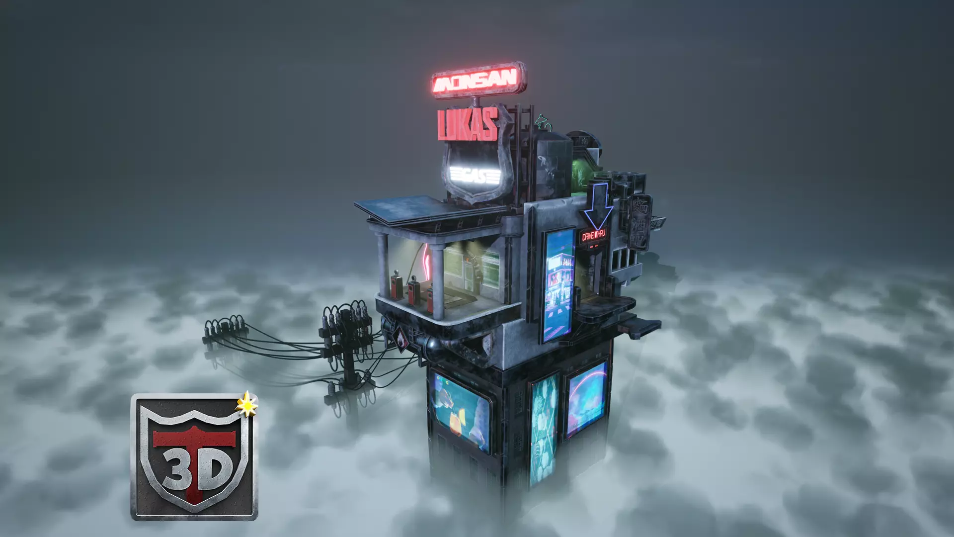 Cyberpunk Stylized Gas Station Blender 3 to UE55 3D Building 3D model