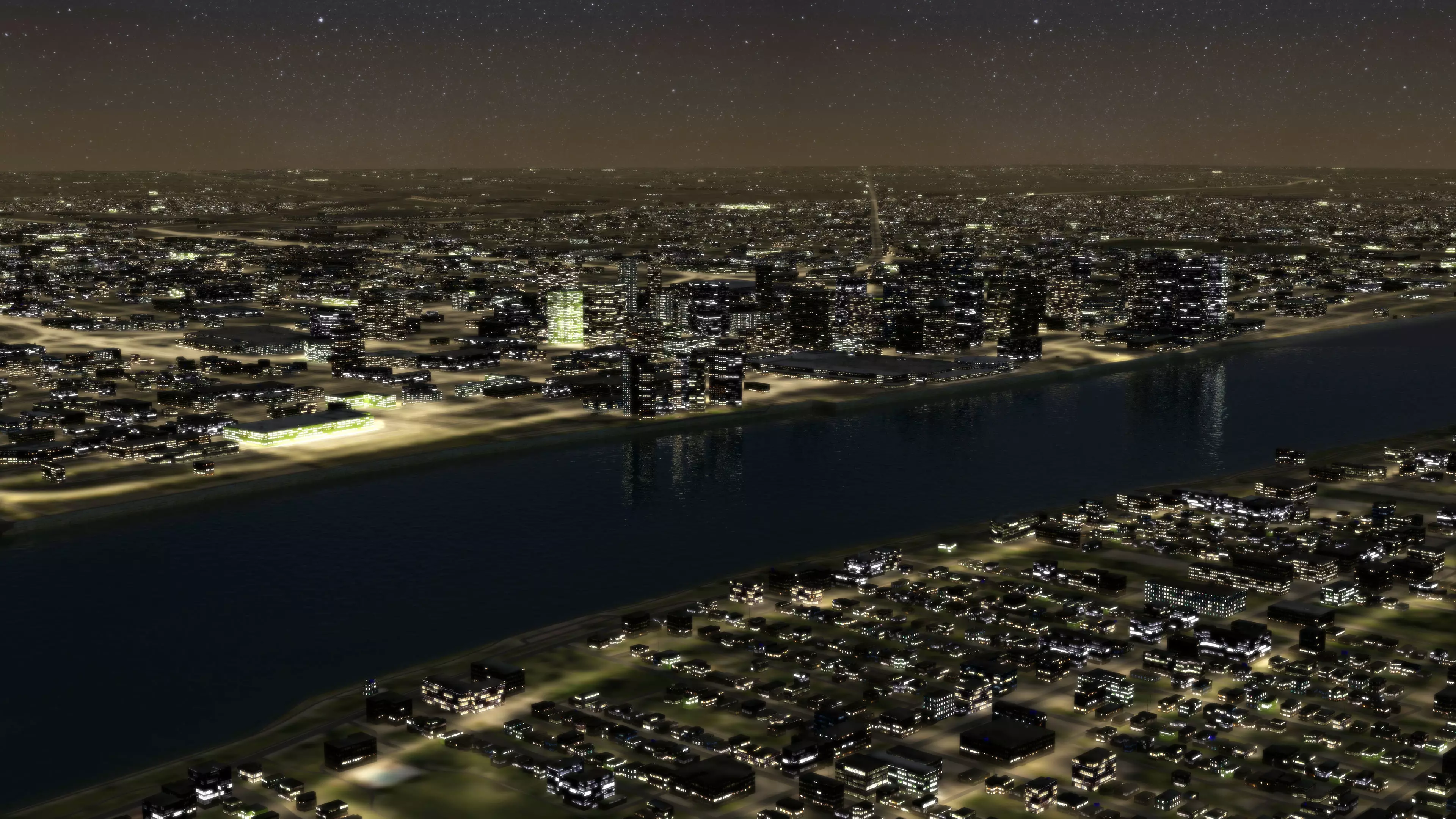 Detroit Night City, 3D model. A daytime version of this model is also available. overs 25km x 25km, thousands of unique buildings, major and minor roads, sidewalks, railway tracks, water surface, building rooftop clutter and more.