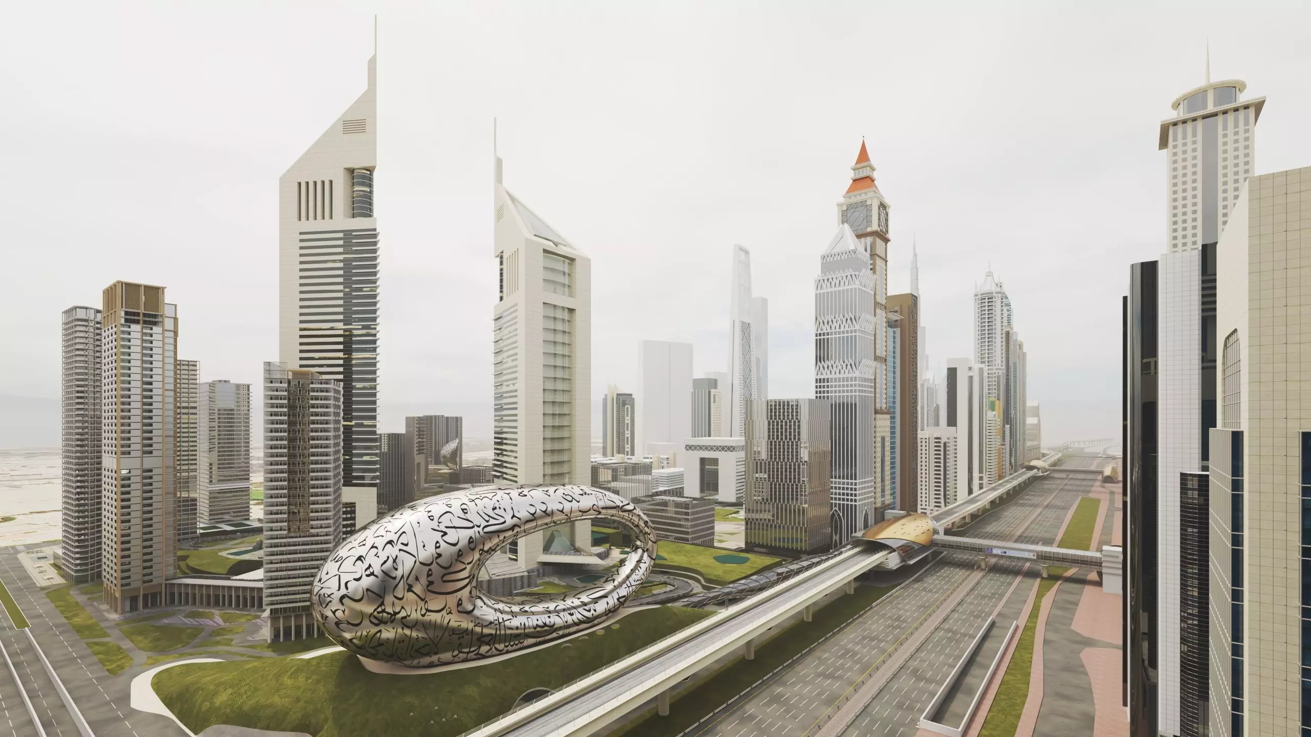 High Detailed Dubai city Sheikh Zayed Road 3d modelsIt is easy to make animation for you.