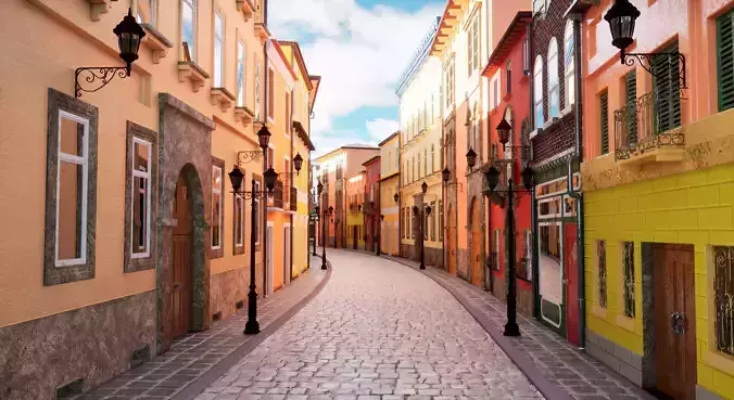 European City Street 3d Scene