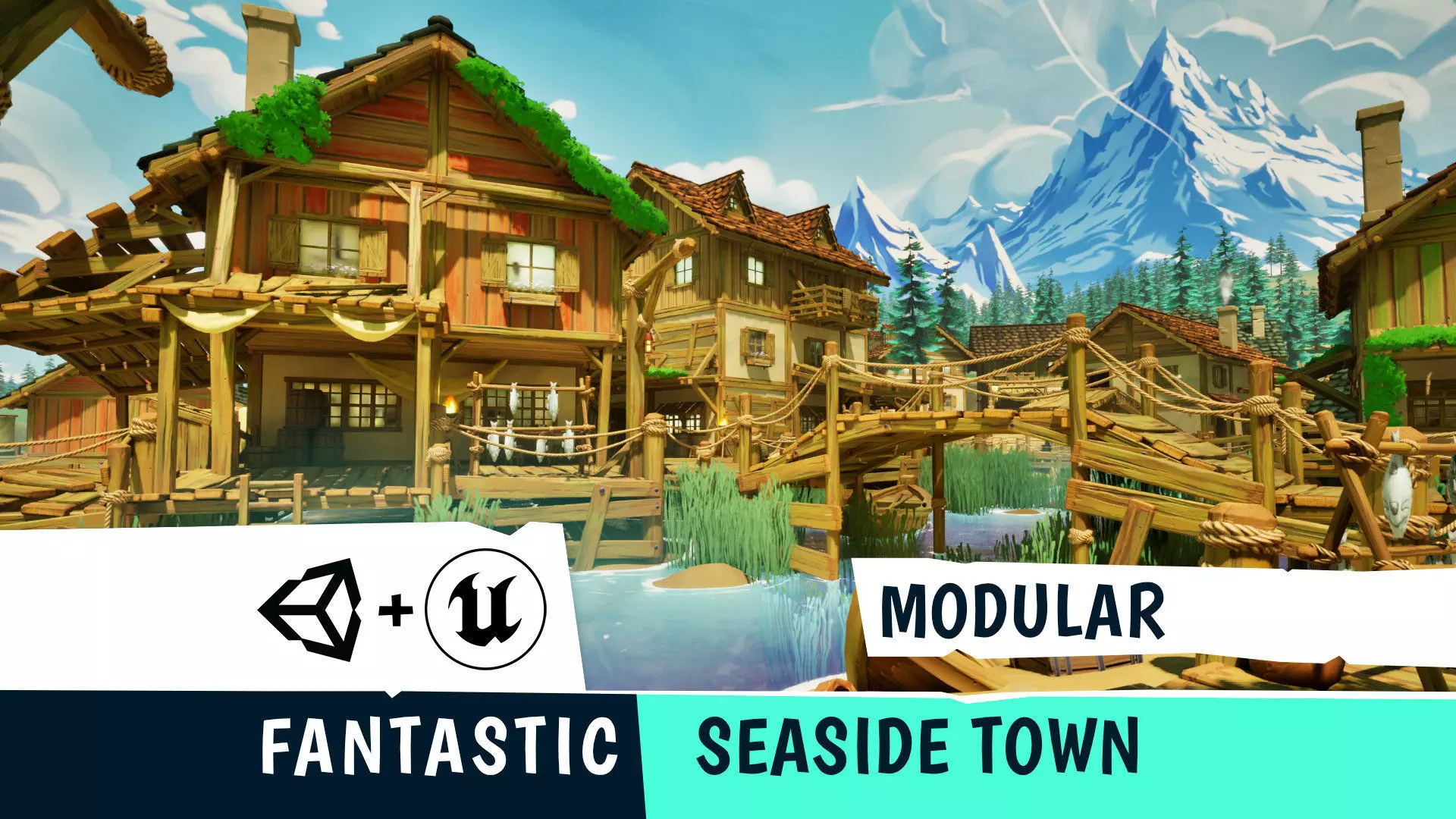 Build your own seaside town with over 250 unique, hand-crafted stylized assets!From modular buildings and props to lush foliage and effects, this pack has everything you need to bring a cozy shore town to life. The highly modular building pieces let you design houses from the ground up - indoor and outdoor. Perfect for crafting charming coastal villages and scenic docks, all with customizable shaders, PBR textures, and Unity Terrain and UE Landscape ready foliage.Let your players explore, unwind, and feel at home in a bright and welcoming seaside town - there’s still a spot left for you to anchor!
