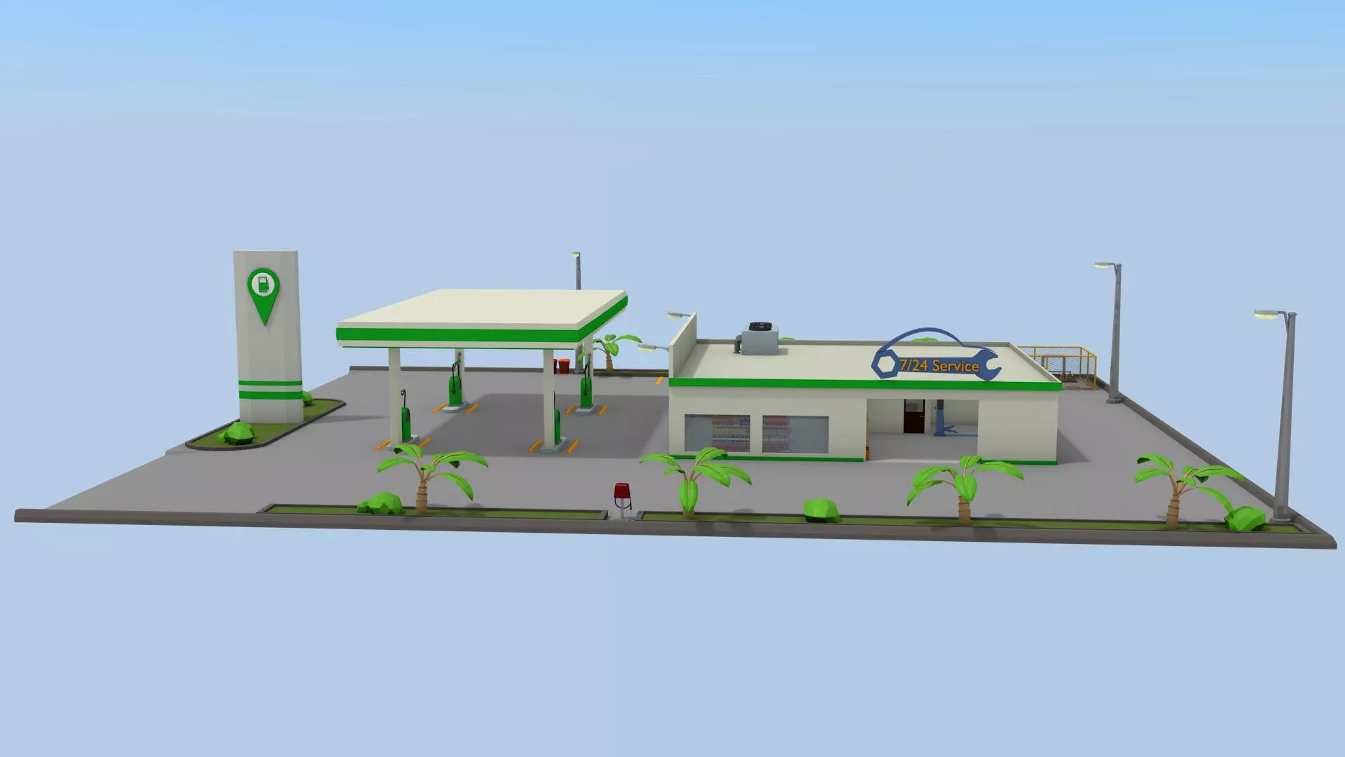 Gas station & Car service low-poly 3d model ready for Virtual Reality (VR), games and other real-time apps. Many detailed low poly Gas station & Car service; -each obje has its own name -materials can simply be changed and edited. -there are regular UV maps, new texture are easily applicable -the desired object can be easily displaced -many different variations can be made thanks to the modular design -stage management is easy thanks to the regular hierarchy -suitable for games and animations-can be entered into the build, navigable