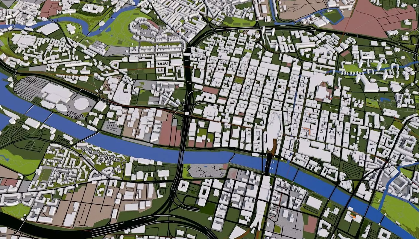 Clean heirarchy- Proper grouping according to the type of real world objects. Properly named objects and materials. Clean Flat UV map- Properly unwrapped UV for most of the objects. Some objects may have cubic mapping applied. Buildings are extracted from real world data. There are random buildings added to some areas where real world data is partially available (missing height details).