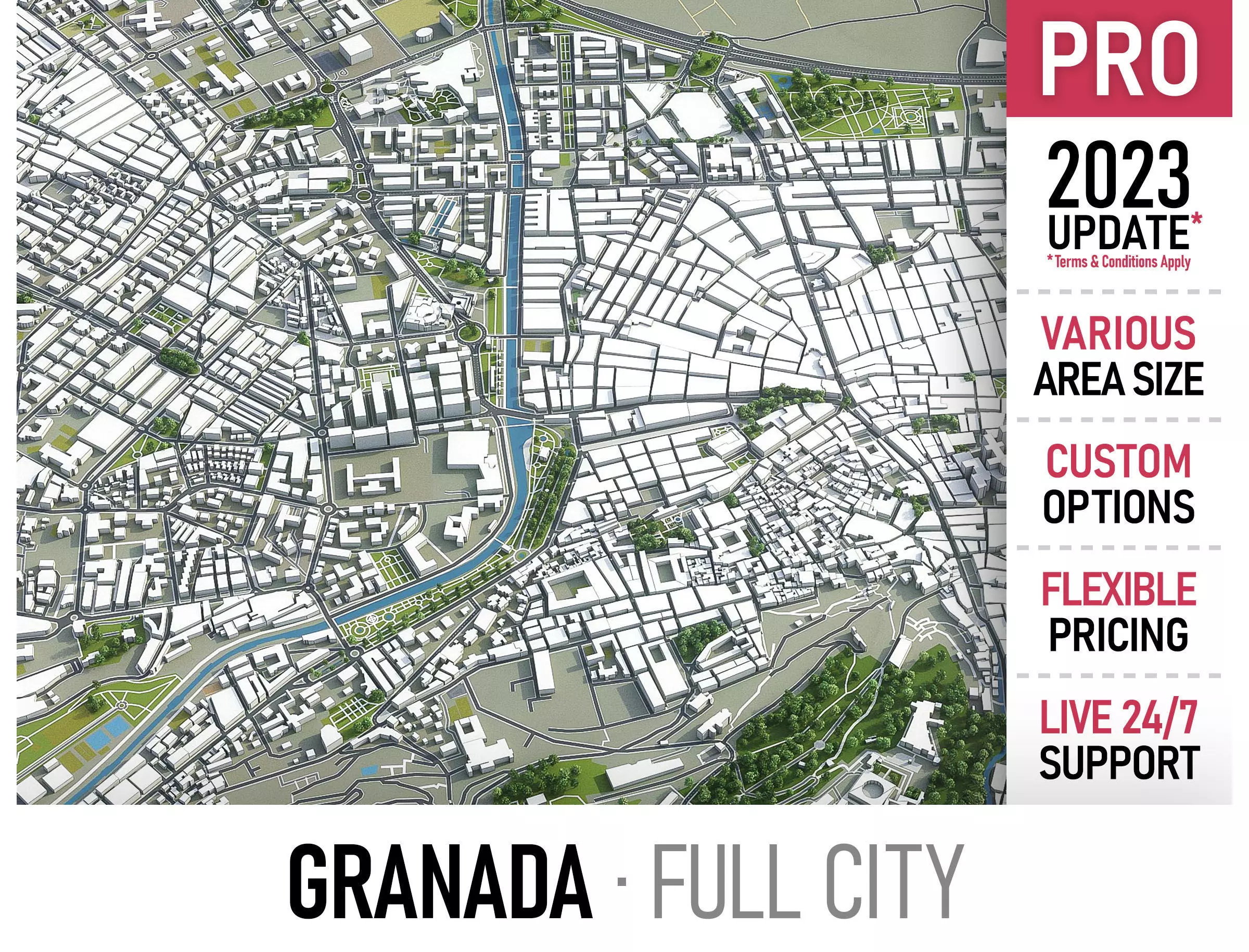 • Full city extents up to 100 x 100 km — or crop to an area of interest for better format compability and scene performance