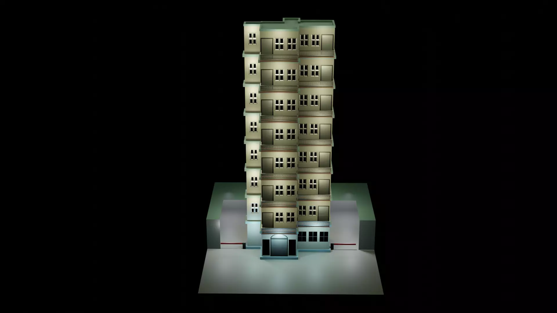 The model has material settings that define how surfaces look (color, shine, transparency, etc.).