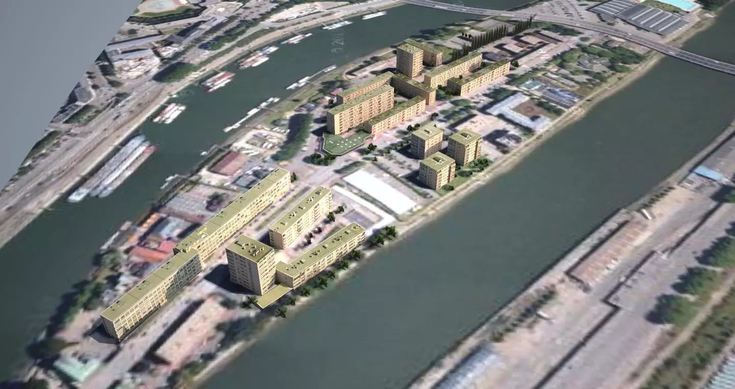 Buildings located on "l'Île Lacroix" in Rouen, France.