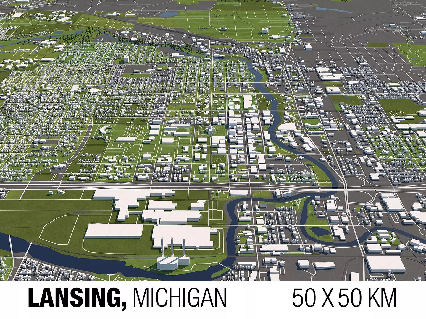 A DETAILED 3D MODEL CITY MAP OF LANSING, MICHIGAN, USA: