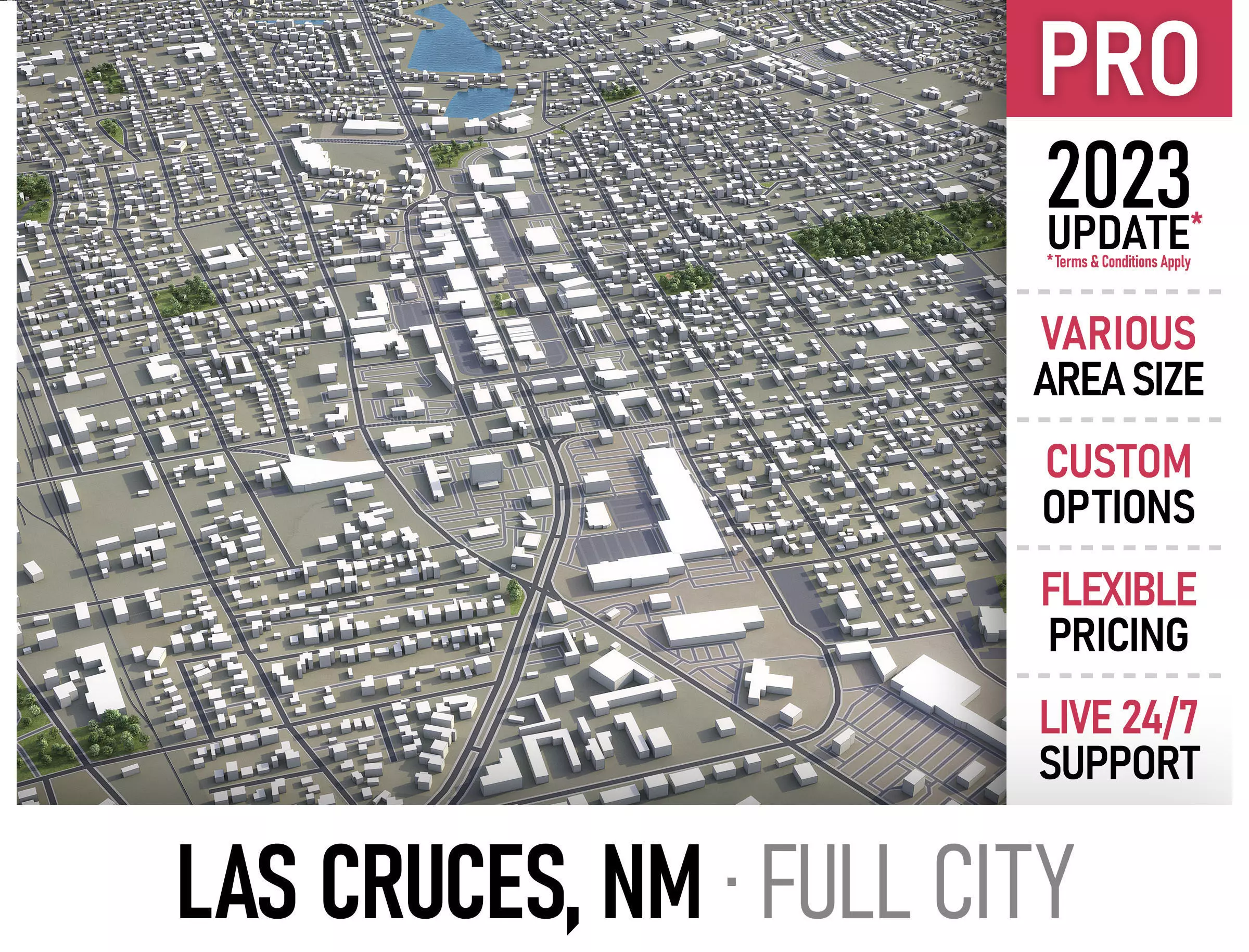• Full city extents up to 100 x 100 km — or crop to an area of interest for better format compability and scene performance