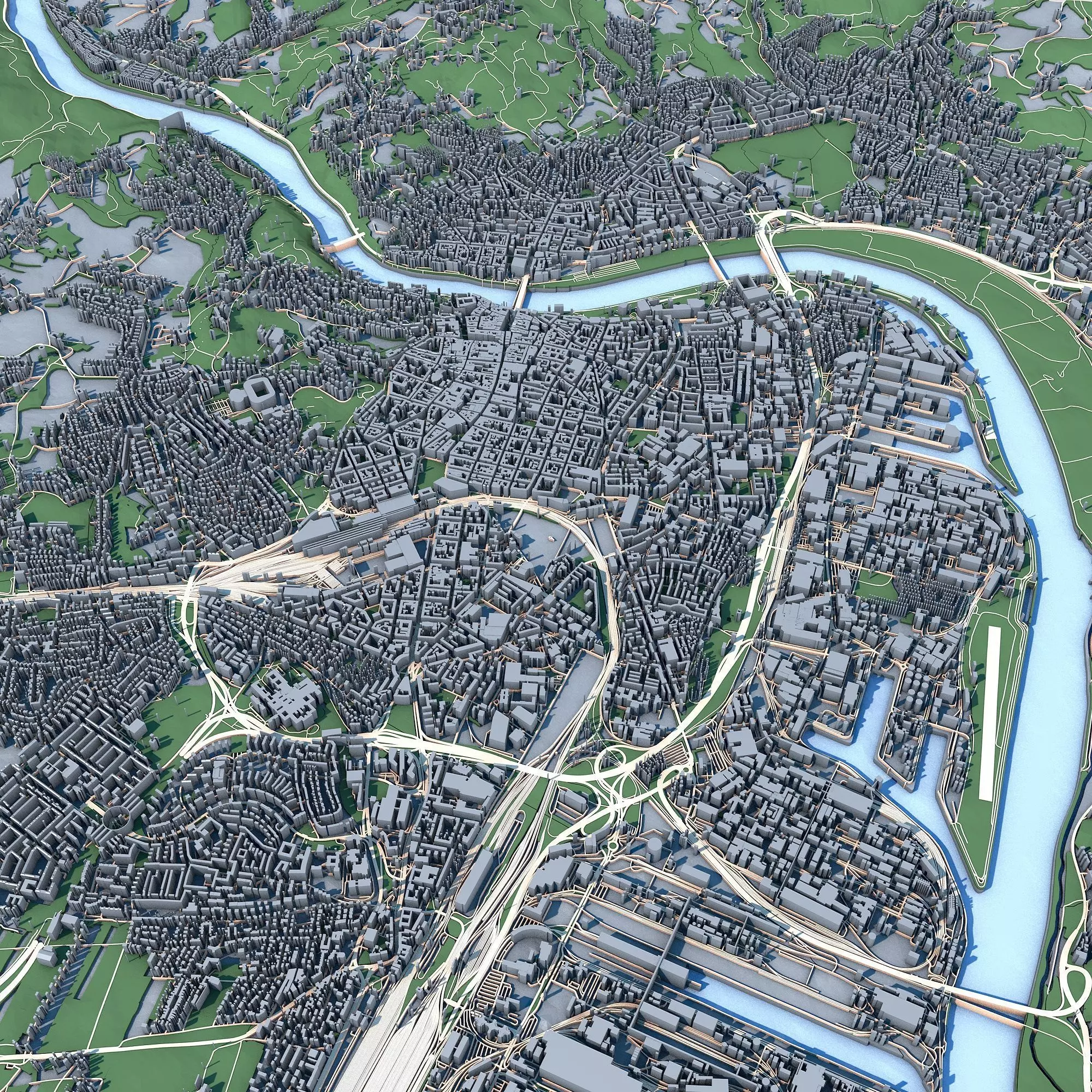 The model has material settings that define how surfaces look (color, shine, transparency, etc.).