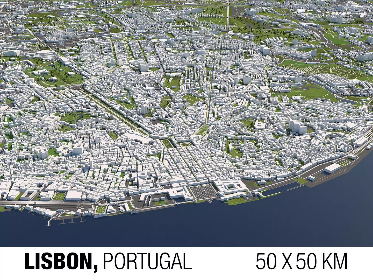 A DETAILED 3D MODEL CITY MAP OF LISBON, PORTUGAL: