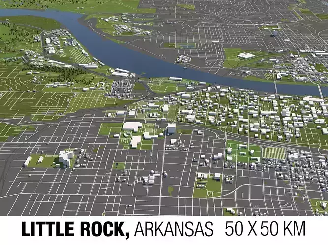 A DETAILED 3D MODEL CITY MAP OF LITTLE ROCK, ARKANSAS, USA: