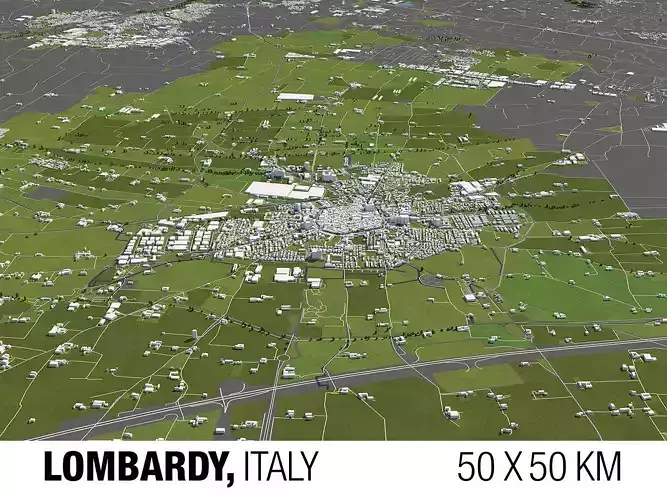 A DETAILED 3D MODEL CITY MAP OF LOMBARDY, ITALY: