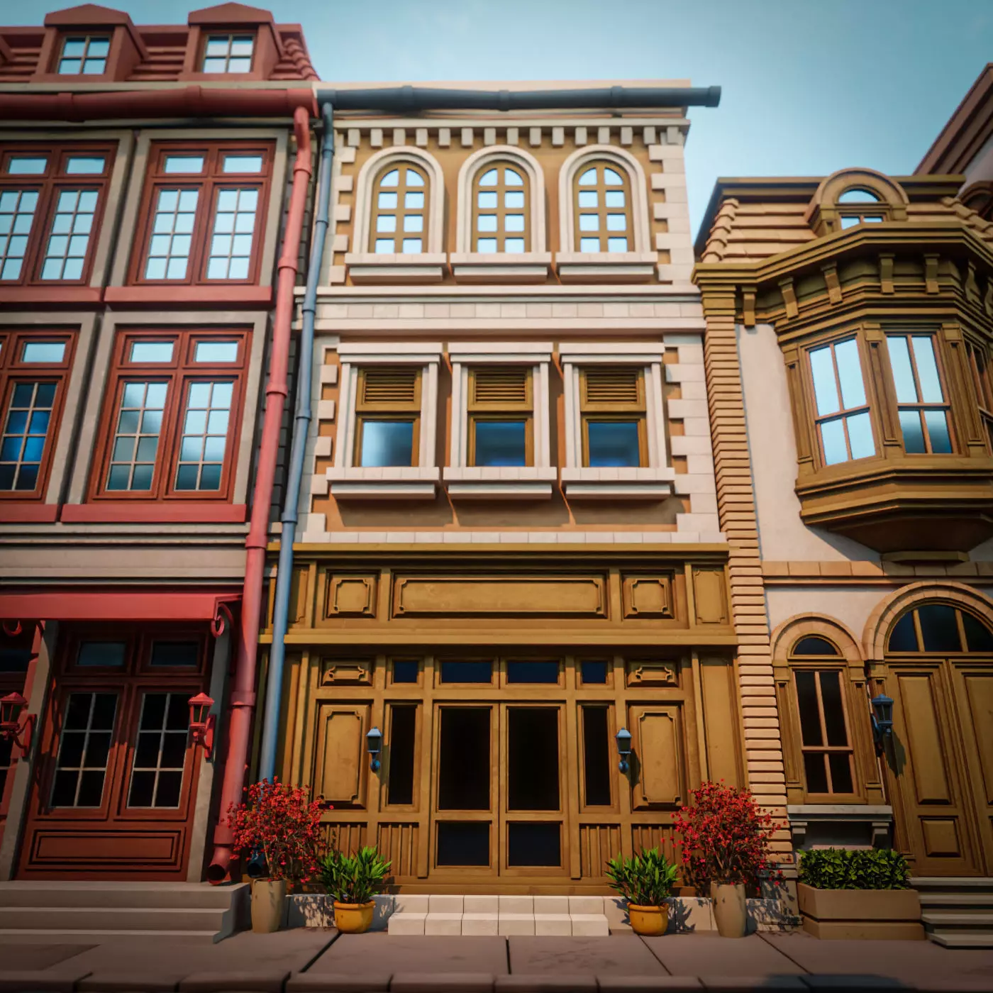 ready to be rendered directly or used in game engines. ------------each building around 50000 poly------------with 4K texture (base color, metallic,roughness for better close-up quality, and changeable texture and various format options that you can use.--------ground road mesh included----------- all poly is a quad poly model and ensures that it is easier and more efficient for you to use it. You can save a lot by buying the PACK that I have prepared on my page along with the demo file as in the video. I wish you success and thank you.