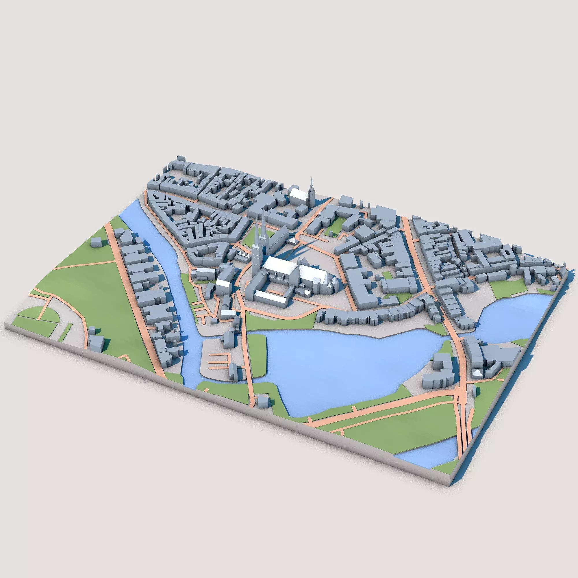 The model has material settings that define how surfaces look (color, shine, transparency, etc.).