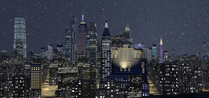 3D model of night Manhattan, part 2. (See part 1 in my models). 3D model includes: Empire State Building, Chrysler Building, Rockefeller Center, UN Building, Times Square, Broadway, skyscrapers surrounding Central Park: Central Park Tower, Steinway Tower, 432 Park Avenue, 53W53. See also: Bank of America Tower, Hudson Yards, One Vanderbilt. 3D model based on a simplified model of the development of Manhattan Island from the municipality of New York. We have complete recognizable sights, as well as texturing more than 9800 buildings in Manhattan. In addition, the buildings under construction were added to the 3D model, including most of the projects that will be built before 2023.