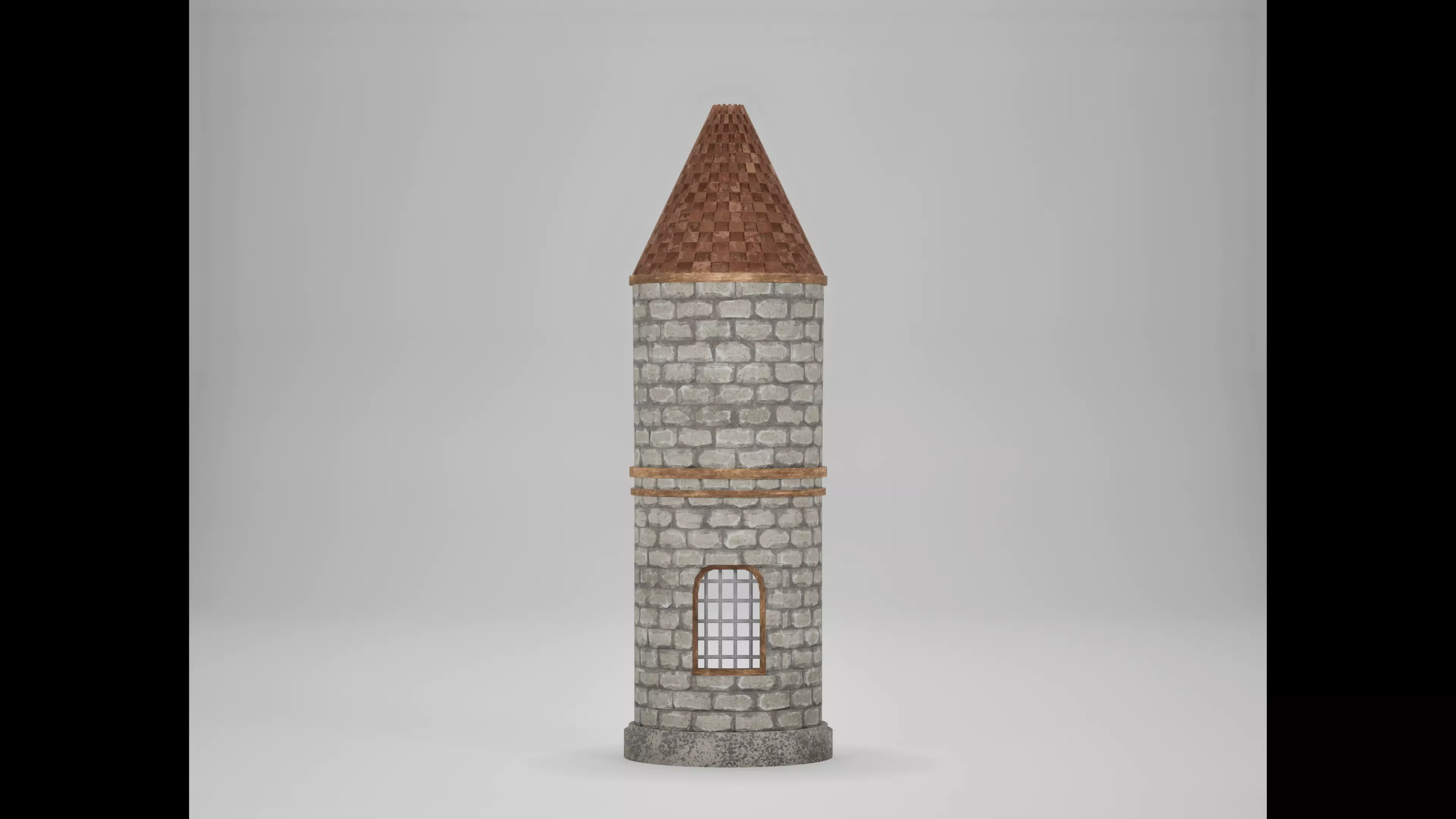 High-quality medieval stone tower 3D asset, featuring a fully enclosed cylindrical structure with a conical roof, optimized for games, real-time applications, and architectural scenery.