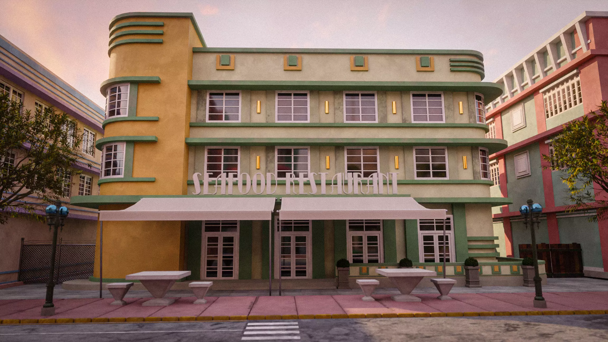 MIAMI VICE CITY ART DECO BUILDING 3 Low-poly 3D model