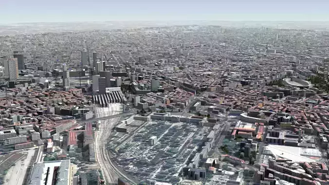 Milan city, Italy. Fully textured 3D model. Accurate geo-referenced model, ideal for arch-viz, city planning or games/simulations. Thousands of unique buildings, major and minor roads, trees, bushes and parks, railway tracks, water surface, building rooftops, cranes, clutter and more. Buildings use randomized generic facade textures.
