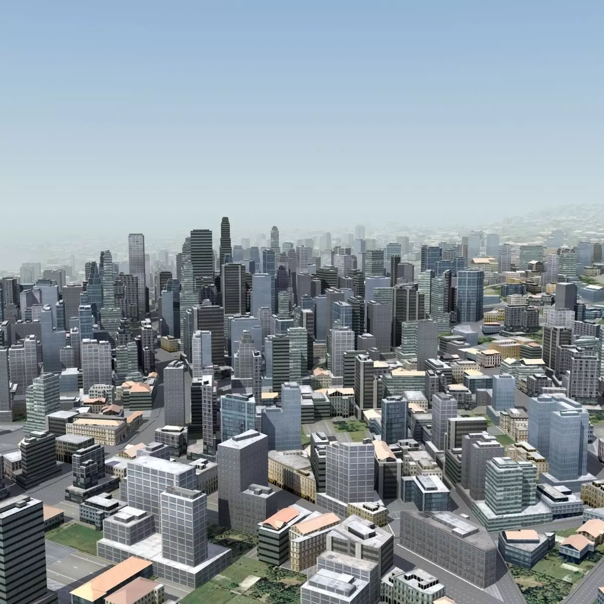 Very large modern city 3D model. Each building is unique. Max version includes lighting and cameras, ready to render. Buildings vary from housing in the suburbs, to taller skyscraper style buildings in the downtown area. Great model for fly-throughs, architectural visualizations or games.