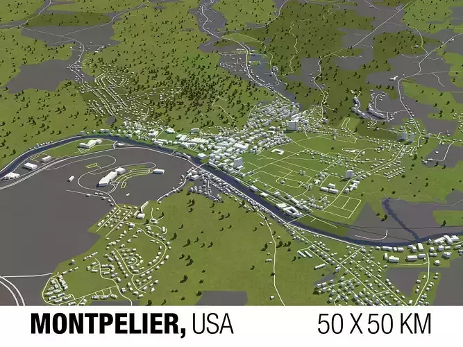 A DETAILED 3D MODEL CITY MAP OF MONTPELIER, VERMONT, USA:
