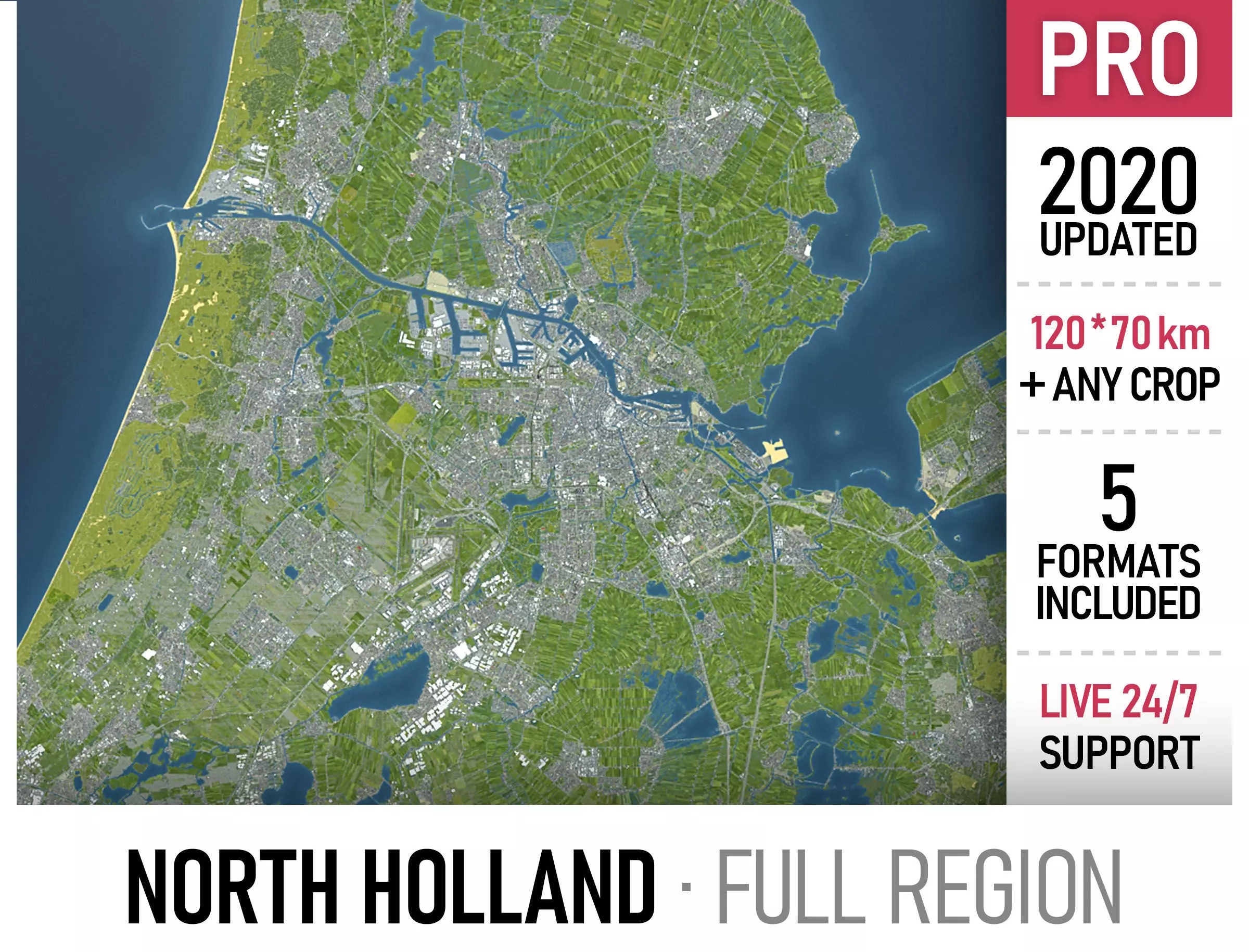 This is exact and accurate to scale 3D model of North Holland province area based on GIS data (June 2020)