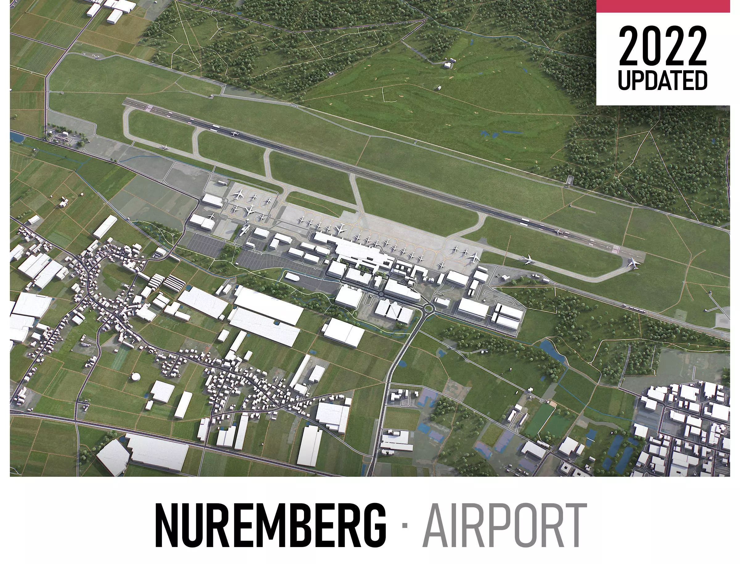 This is exact and accurate to-scale 3D model of Nuremberg Airport and its surrounding area based on GIS data (April 2022)
