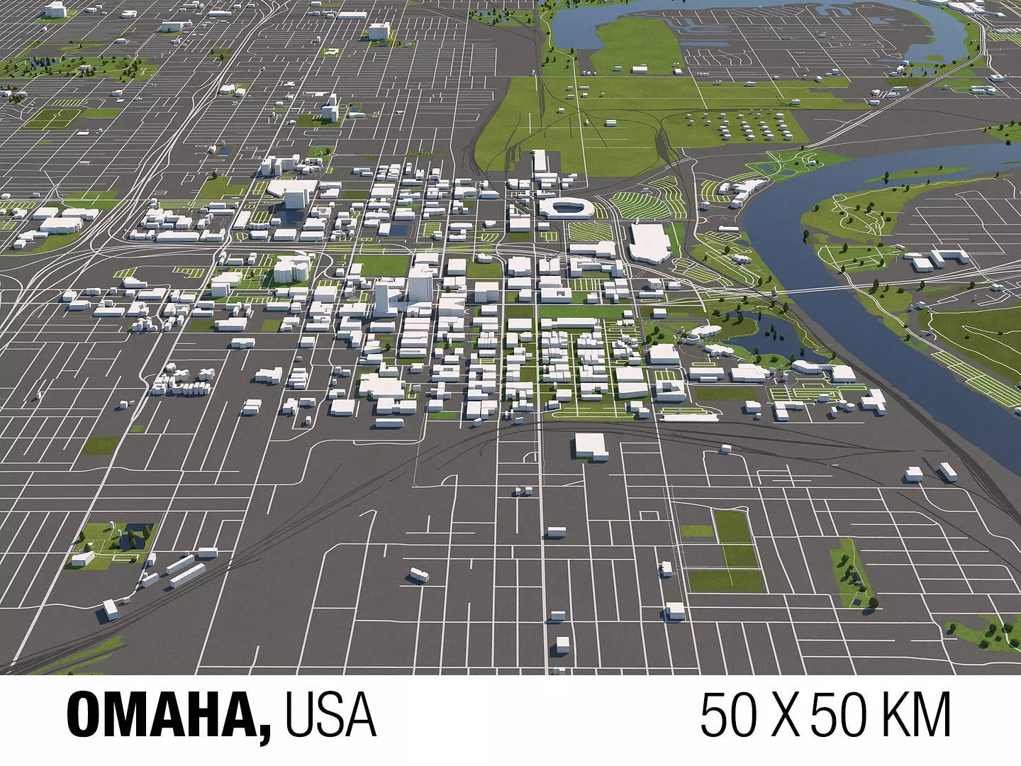 A DETAILED 3D MODEL CITY MAP OF OMAHA, USA: