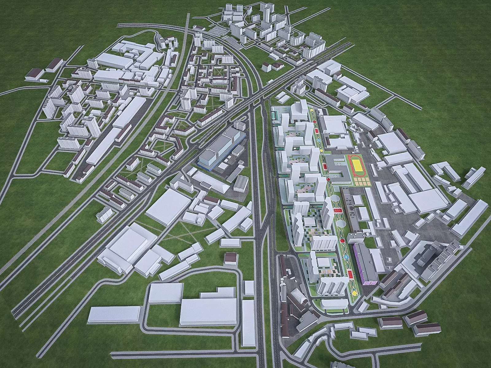 This is detailed and textured real world model of urban area with roads pavements and grassMesh is low-poly, allows you to easily build up the additional details, edit geometry.