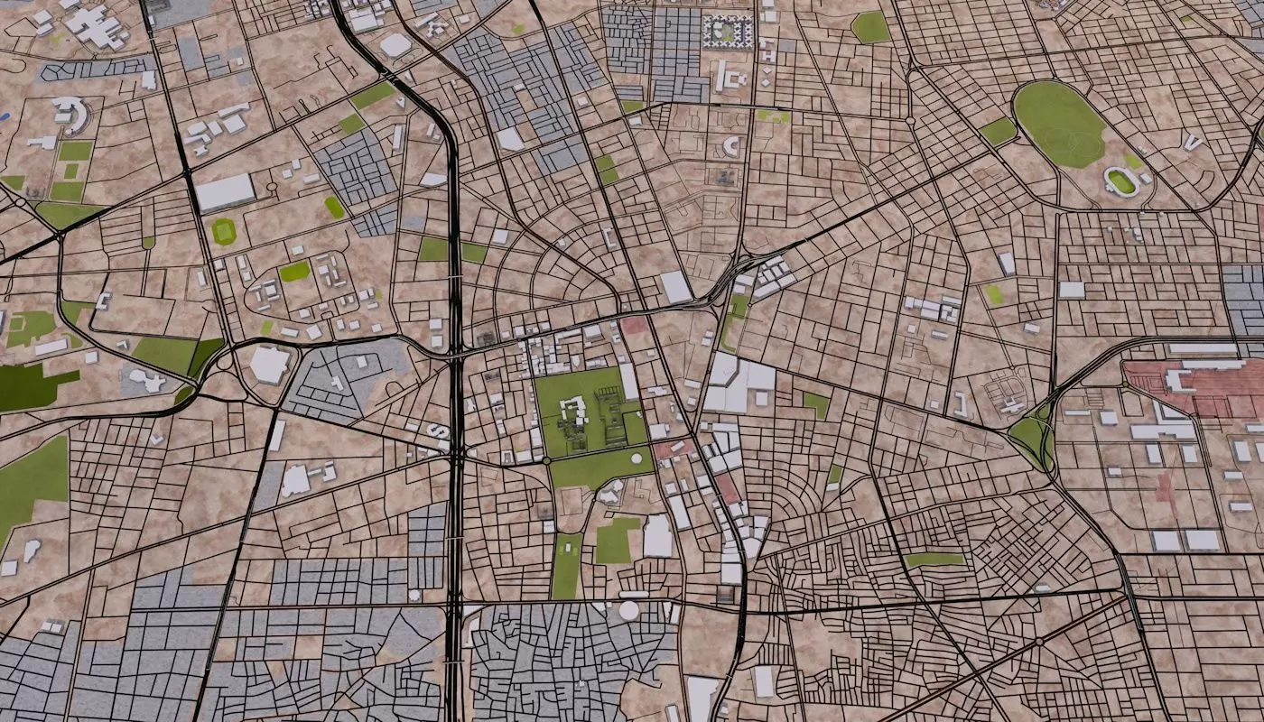 3D representation of Riyadh city_Kingdom of Saudi Arabia using 2019 October map data.This scene contains details of buildings, roads, land details, area details, airport, railway and water details.