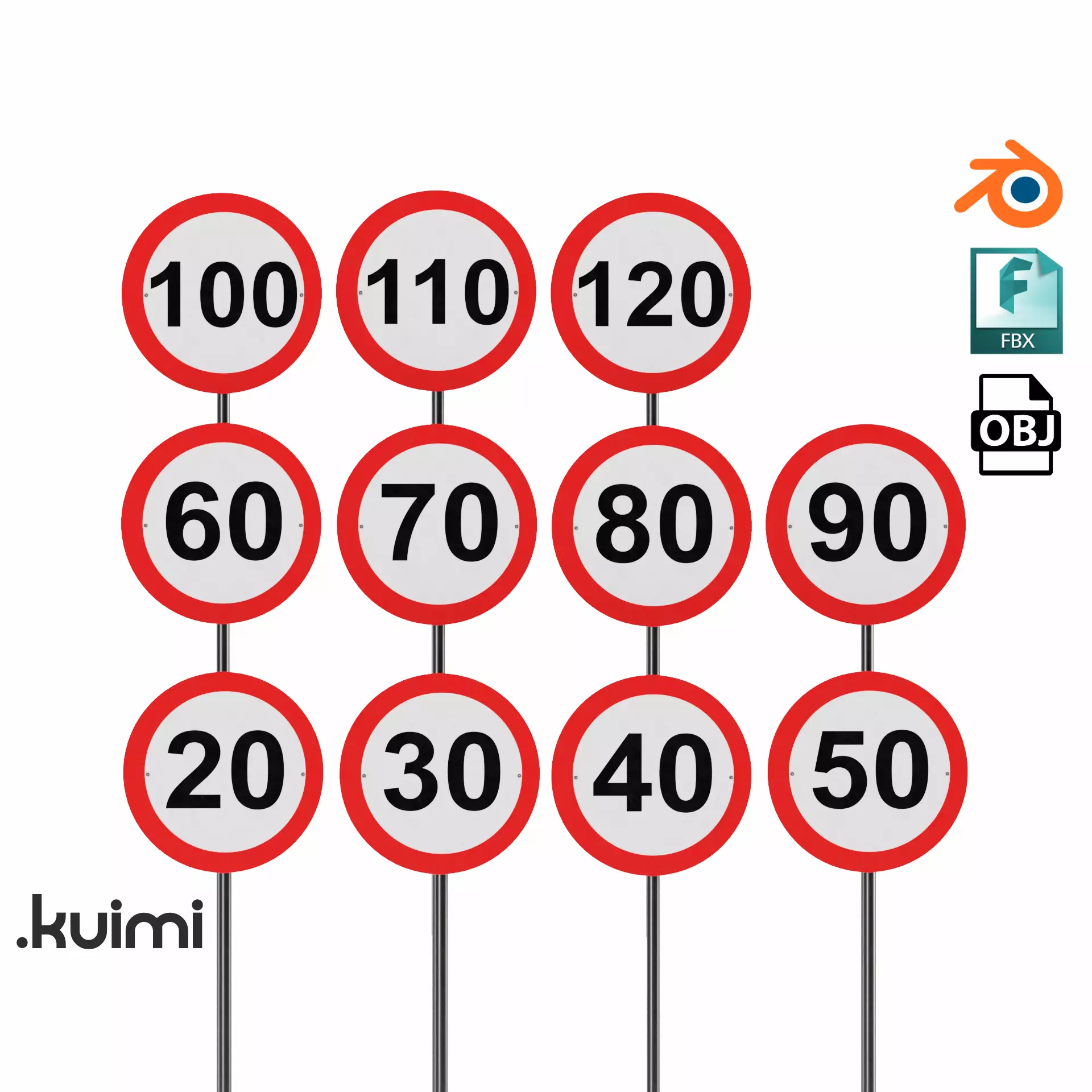 This pack includes 11 speed limit road signs. All the models included are PBR.