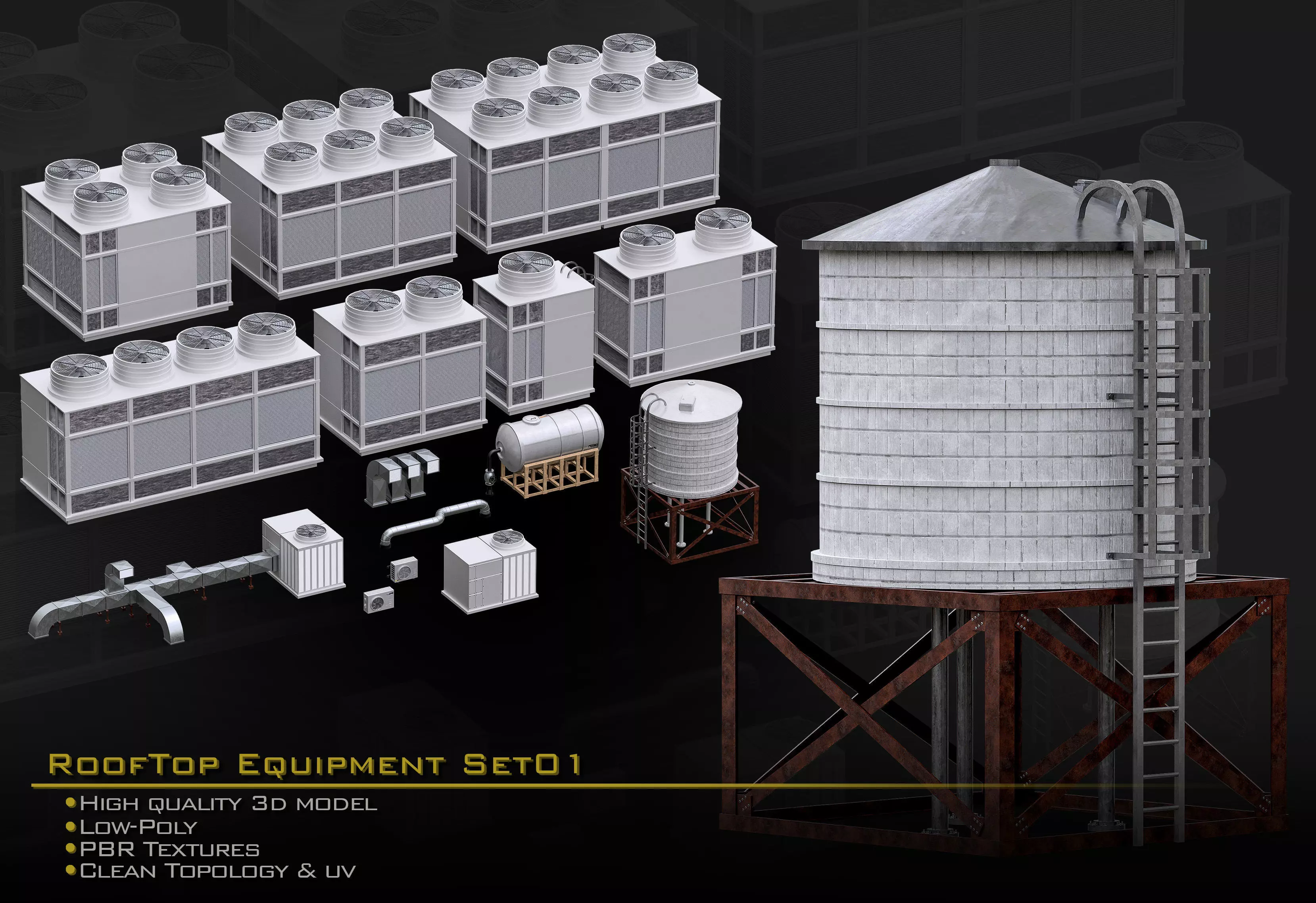 Rooftop Equipements Set01 Low-poly 3D model