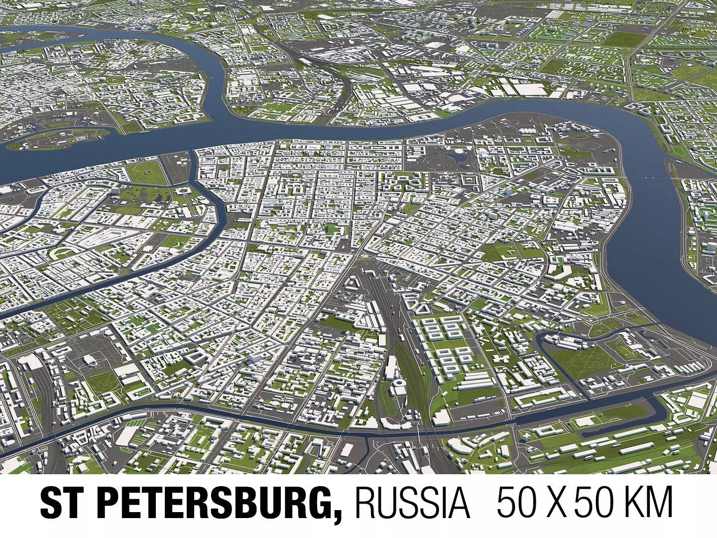 A DETAILED 3D MODEL CITY MAP OF ST PETERSBURG, RUSSIA: