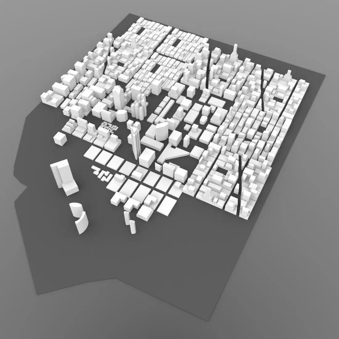 - The model includes the following groups:-- Terrain-- Over 90 individual buildings-- 11 blocks of buildings