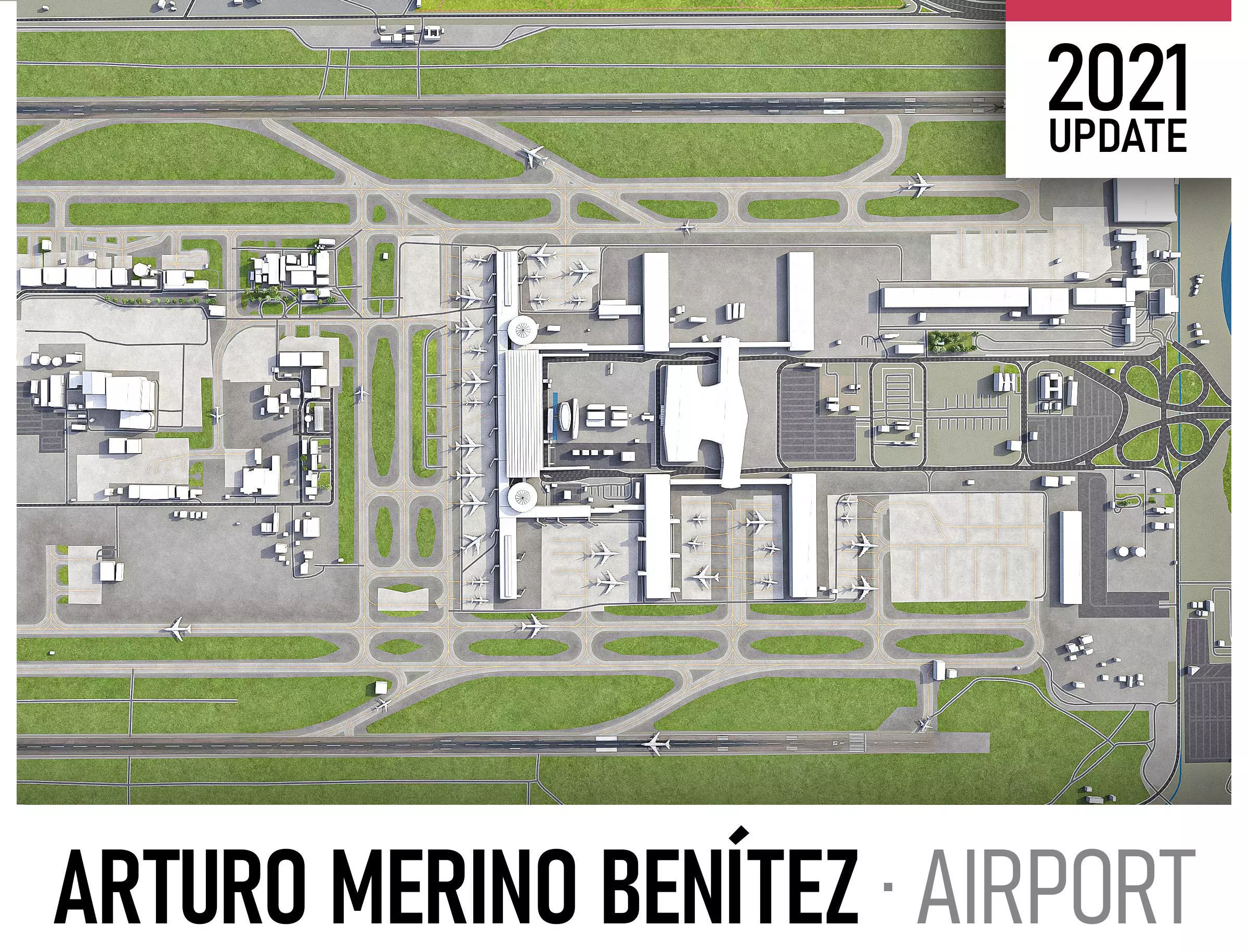 This is exact and accurate to-scale 3D model of Santiago Arturo Merino Benítez Airport (SCL) and its surrounding area based on GIS data (March 2021)