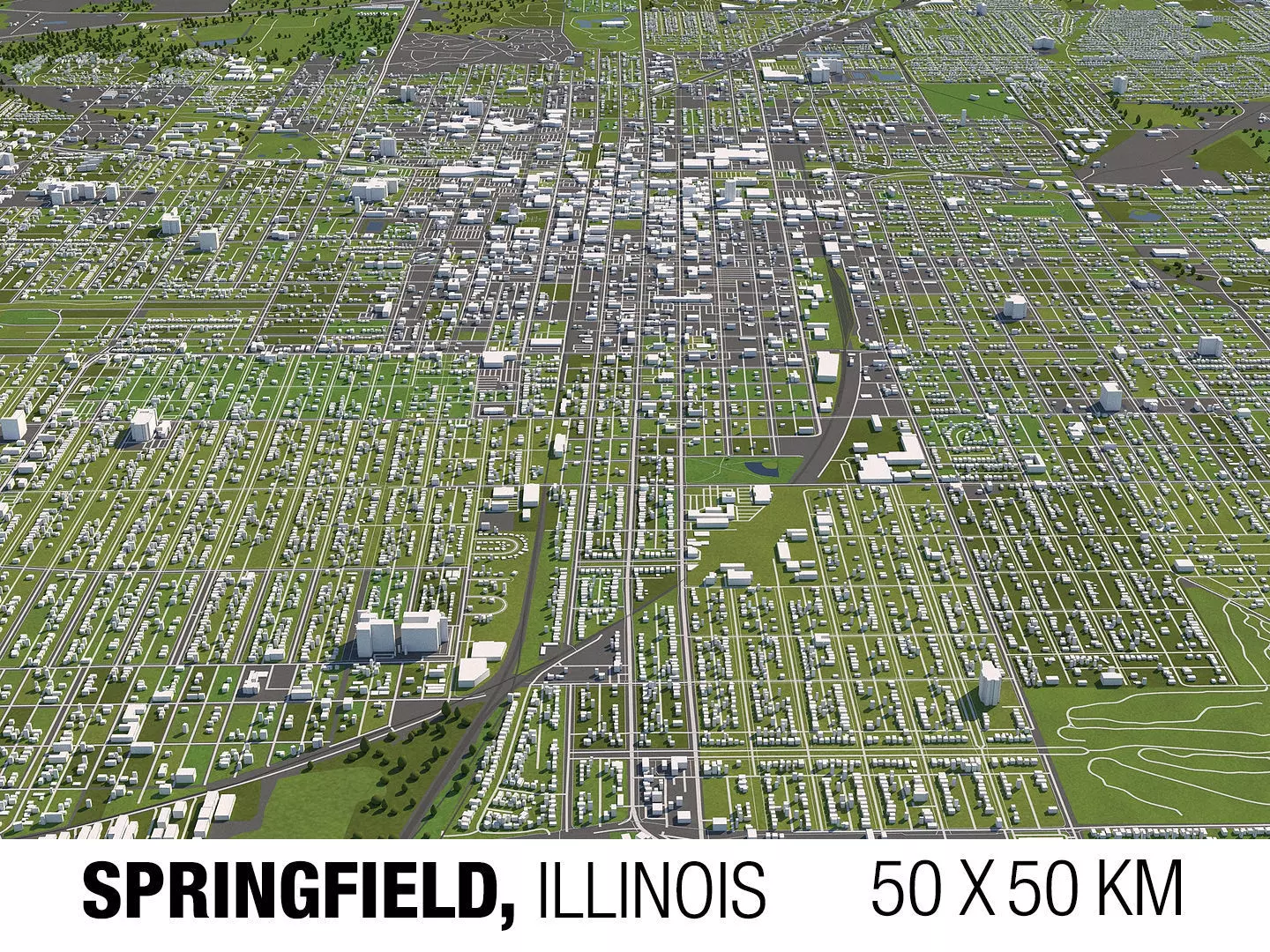 A DETAILED 3D MODEL CITY MAP OF SPRINGFIELD, ILLINOIS, USA: