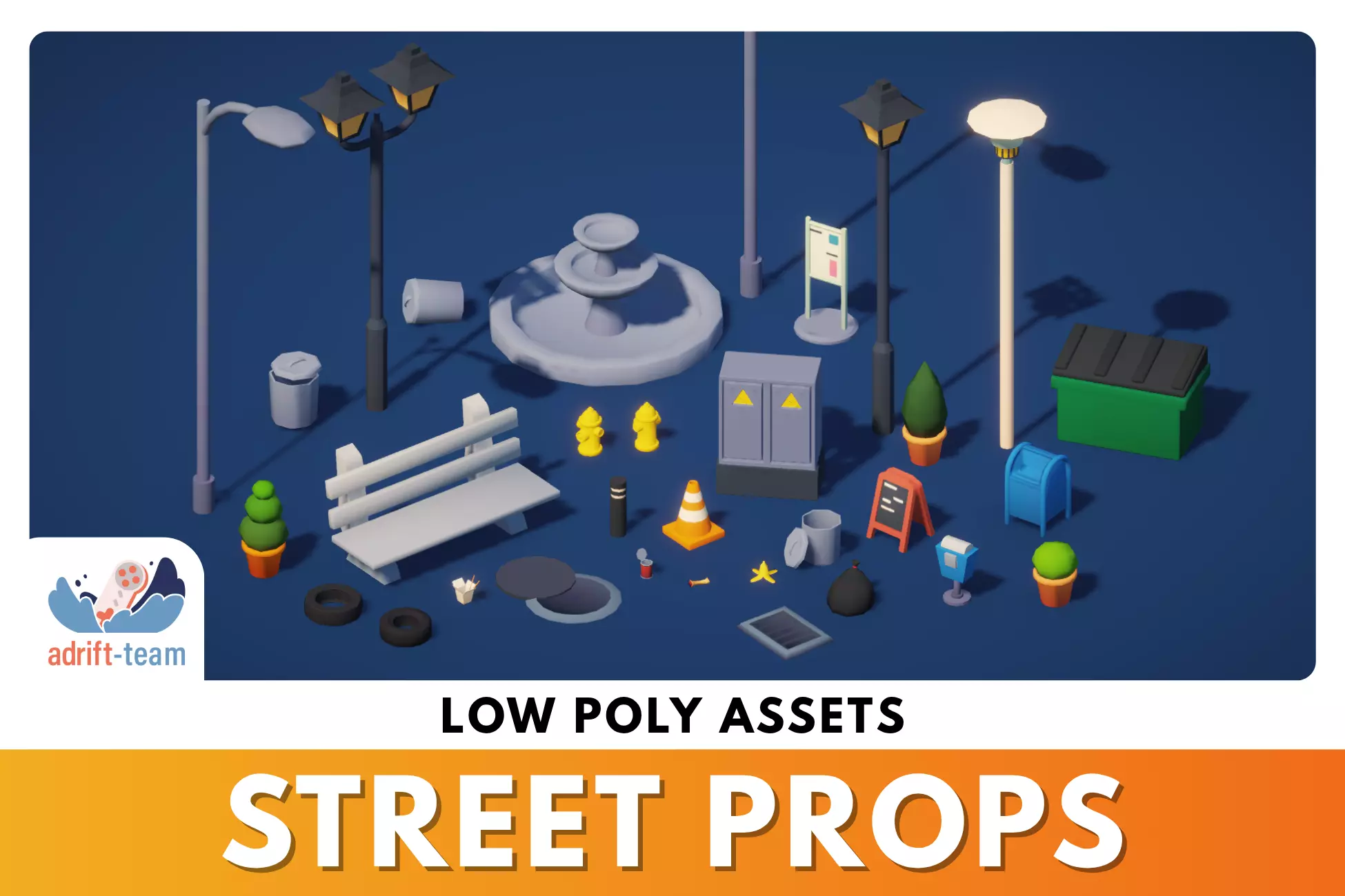 Enhance your city environments with this versatile collection of low poly street props, designed to bring life and detail to your urban scenes. This pack includes a wide variety of stylized, game-ready objects commonly found in streets and public spaces — perfect for mobile, casual, or stylized 3D games.You’ll find essential elements such as:Traffic cones, street lamps, benches, trash bins,