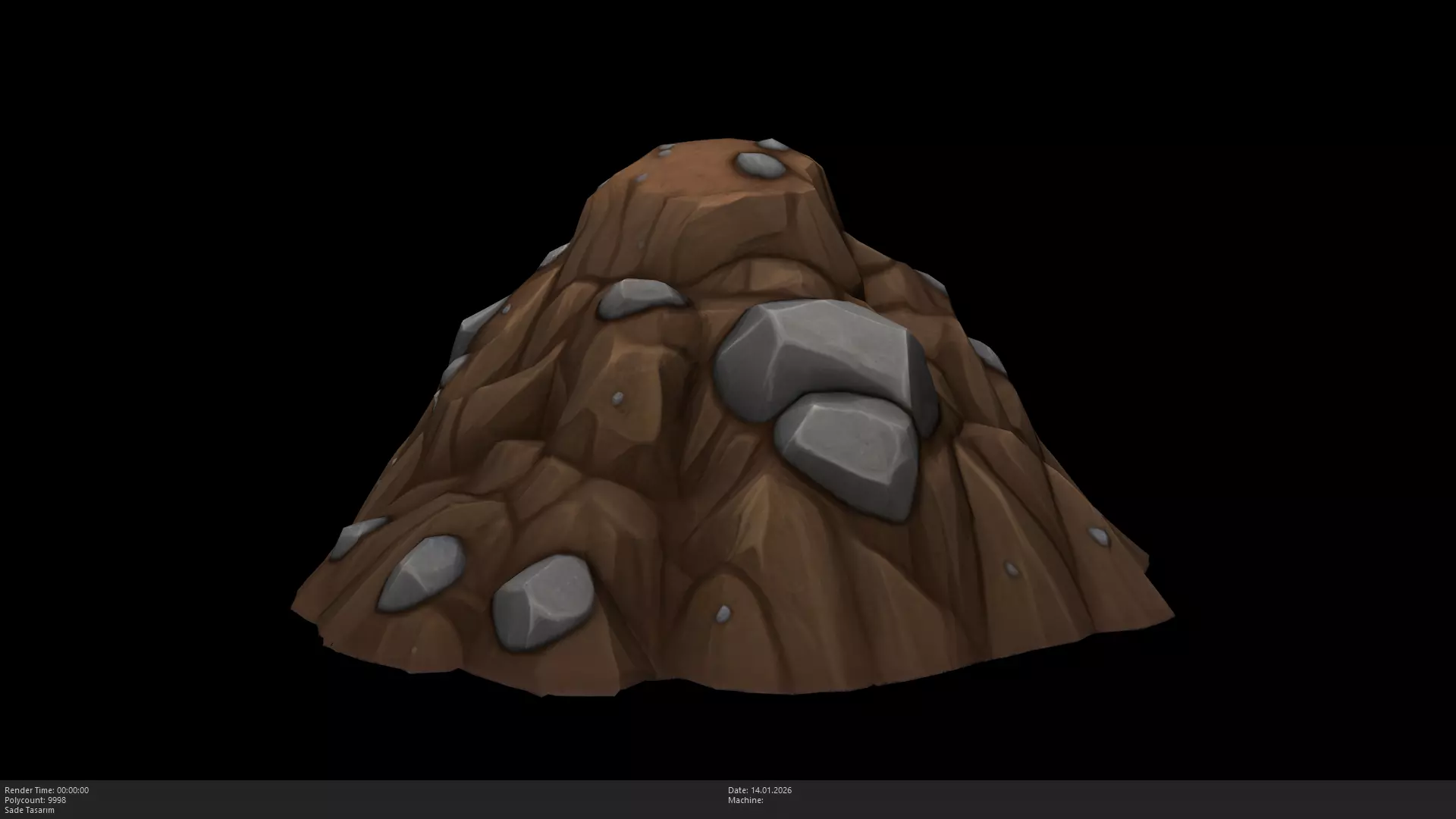 Optimized Topology: A well-structured mesh with 10,000 polygons, providing smooth transitions between the dirt and rocks while remaining fully game-ready.