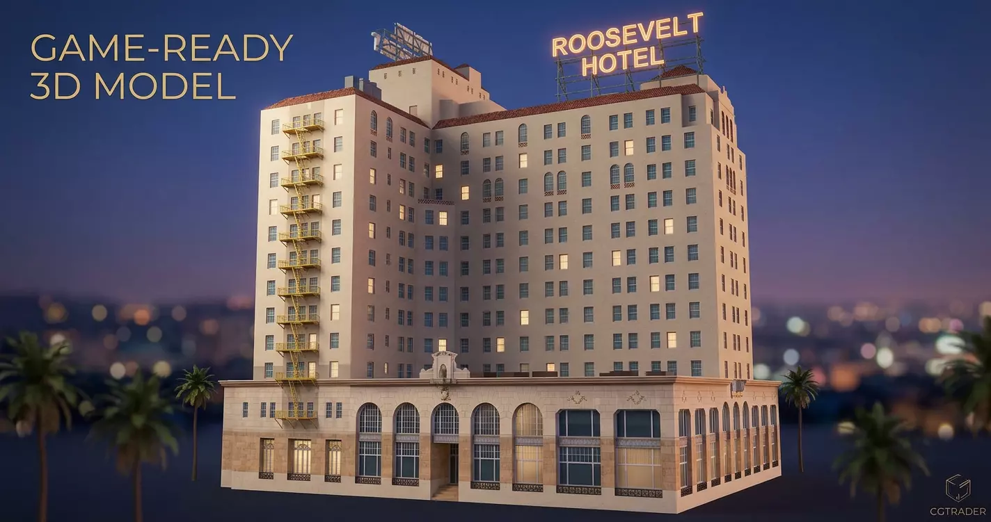 Step into the virtual realm of iconic elegance with this meticulously handcrafted 3D model of The Hollywood Roosevelt.