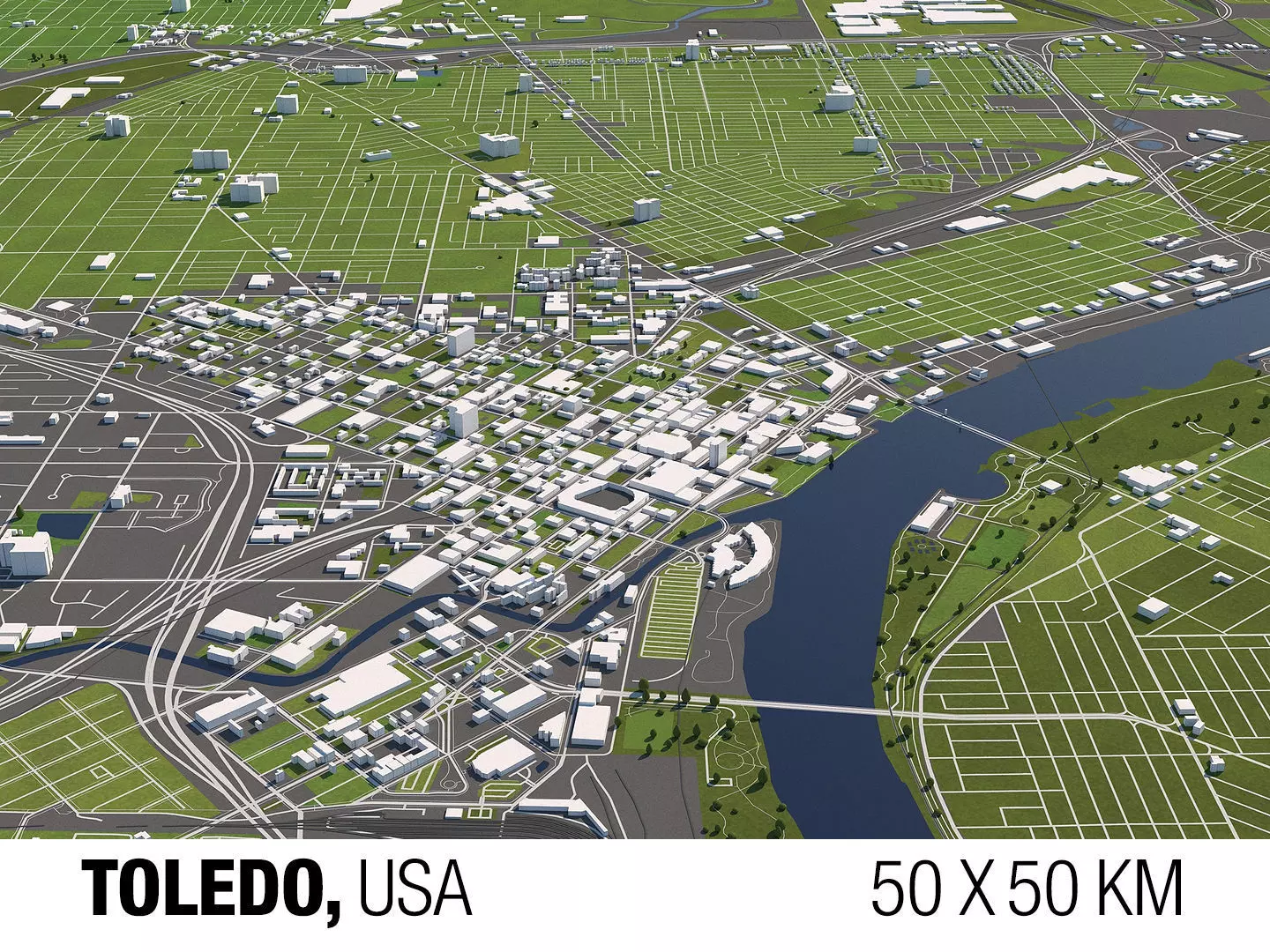 A DETAILED 3D MODEL CITY MAP OF TOLEDO, USA:
