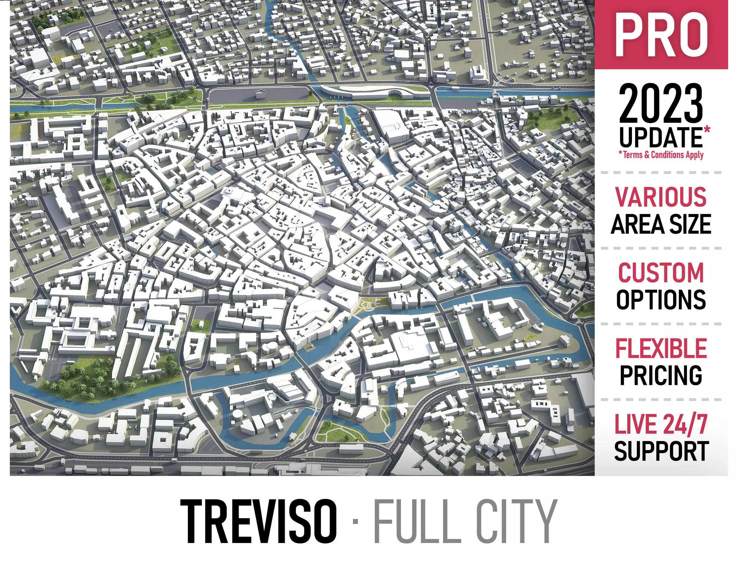 • Full city extents up to 100 x 100 km — or crop to an area of interest for better format compability and scene performance