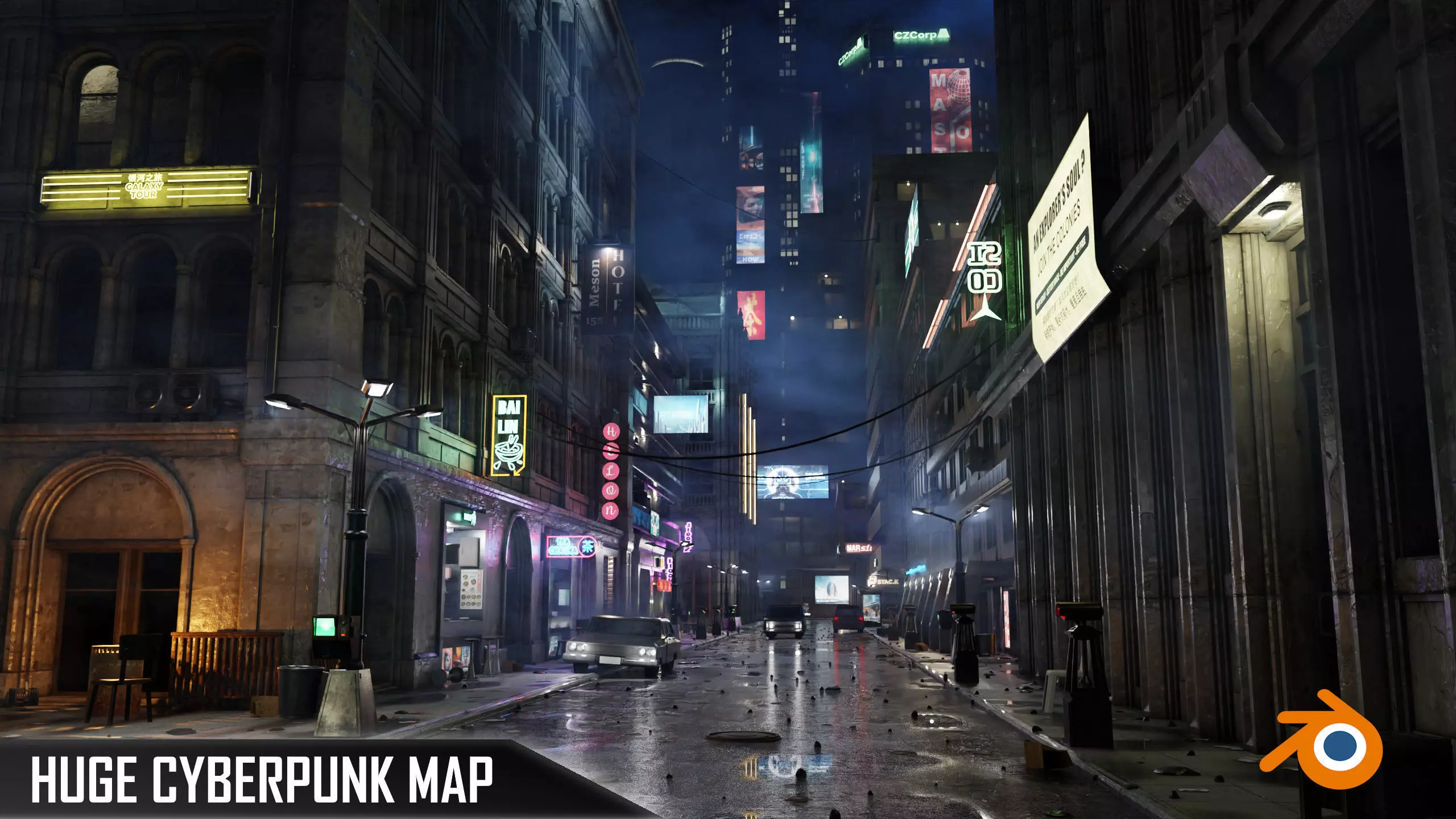 My favorite realization, I wanted to create a complete Cyberpunk scene, with a retro futuristic inspiration for a long time. I hope you will like it :) Ultra detailled and full of life: even with no characters included, all the small details to explore make the map very alive. A lot of little elements modeled in 3D (no flat textures): a lots of differents stores, with their own identity and products. A unique Retro Futuristic Atmosphere, inspired from Blade Runner