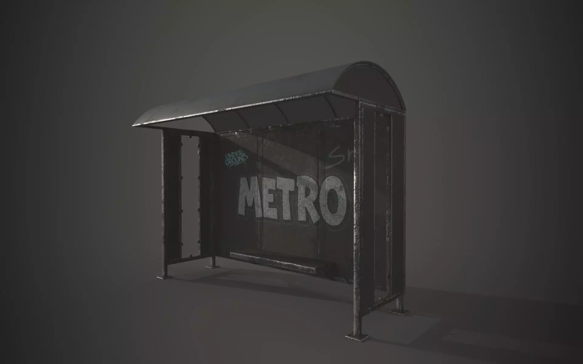 This 3D model of an urban bus stop shelter includes two distinct texture sets: