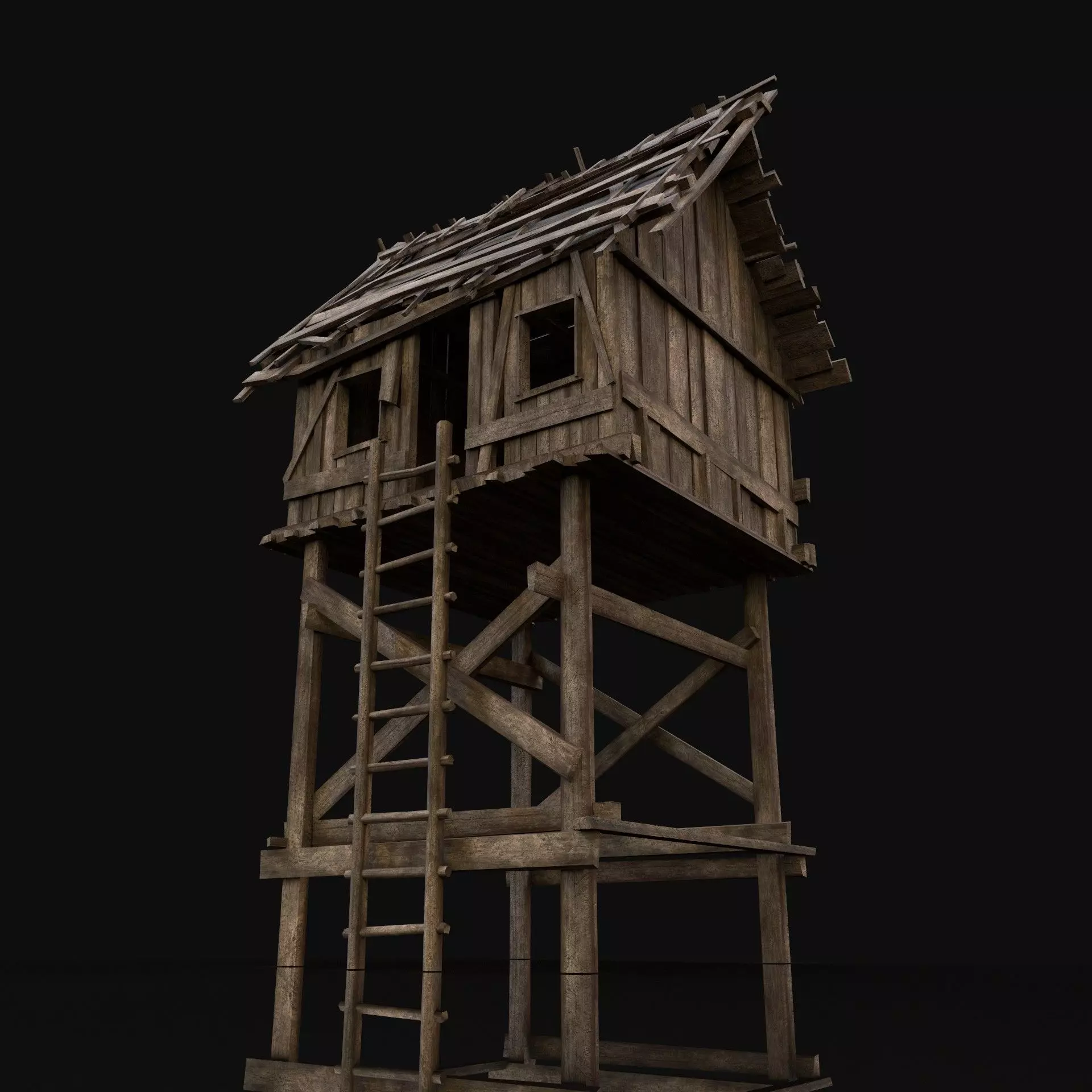 High quality, detailed model of wooden scouttower - fully enterable for your game character.We used tiled texture of wood, so feel free to easily switch it to your own :)Ladder is saparated object.You wont be disappointed. Enjoy!