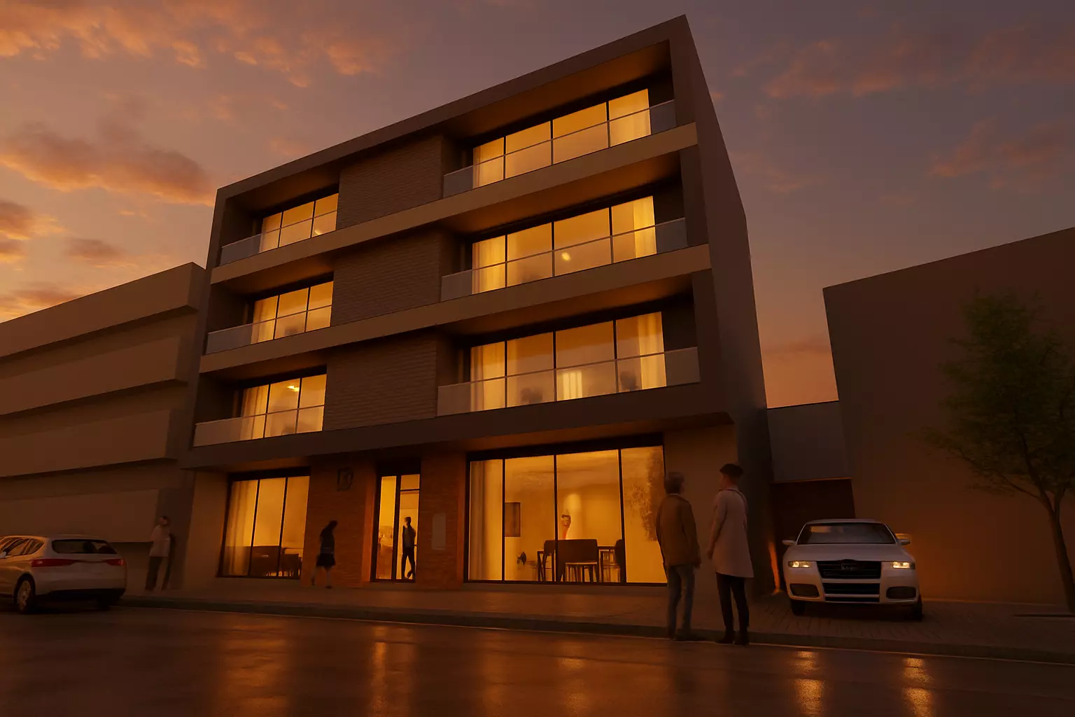 A clean and modern 6-floor multifamily building featuring a ground floor for commercial or mixed-use functions. Built on a 22 x 16 meter footprint, this model is ideal for real estate concept presentations, feasibility studies, and early-stage design proposals.