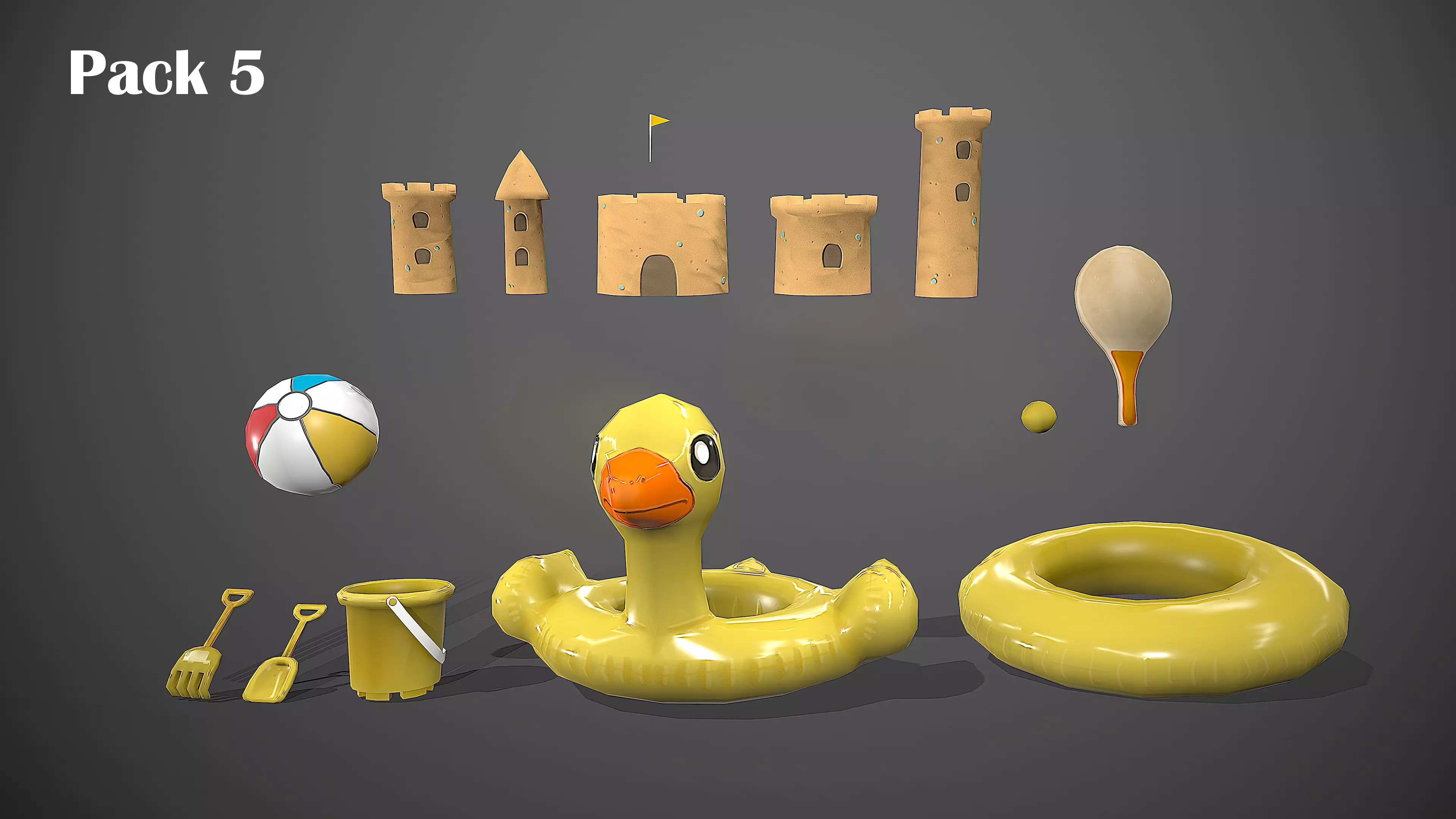 Low poly textured models of CARTOON BEACH PACK . Well textured and ready for Virtual Reality (VR), Augmented Reality (AR), games and other real-time apps for handheld devices.