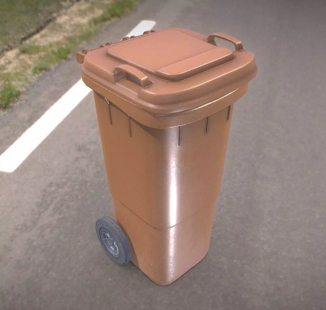 Here is the low-poly and game-ready version of the plastic waste bin in brown with a filling capacity of 120 liters.
